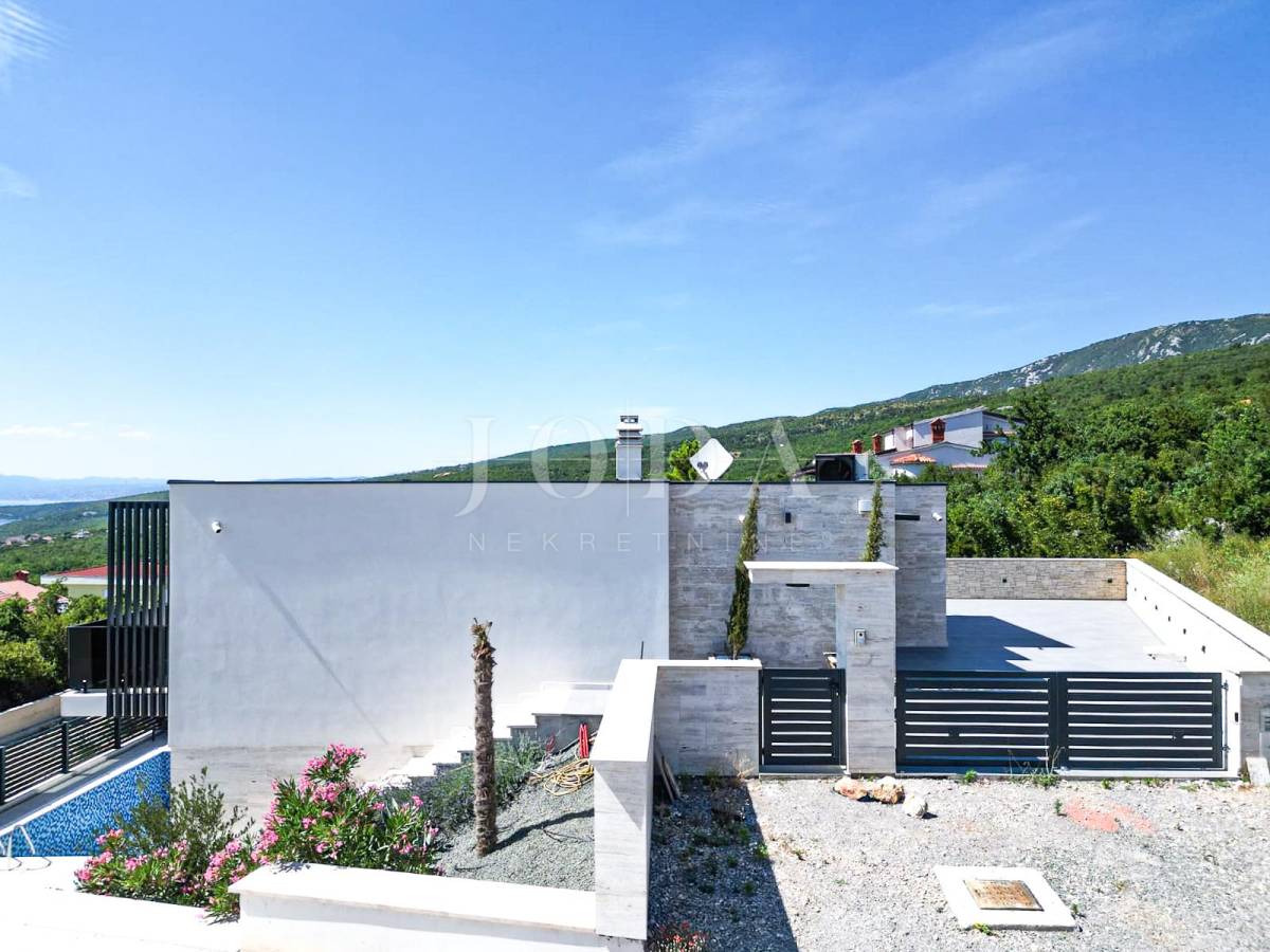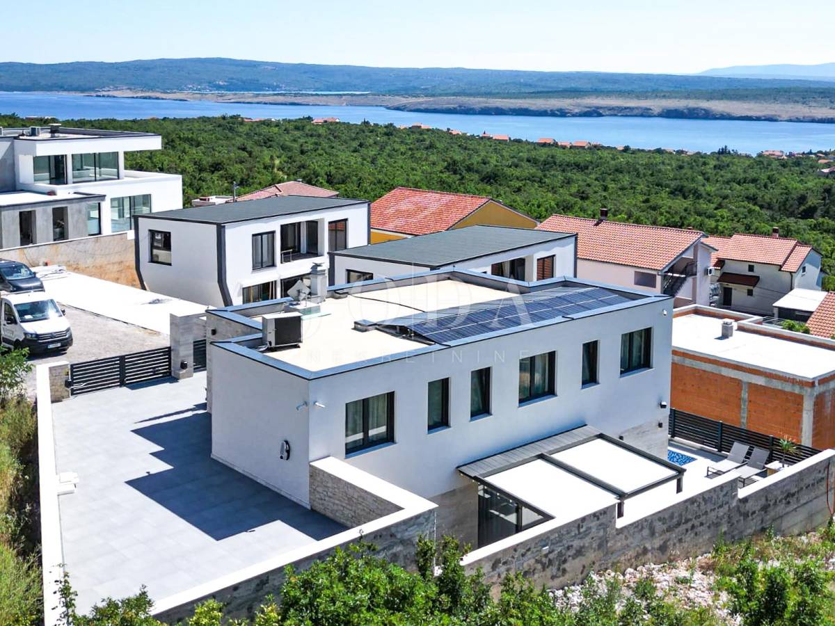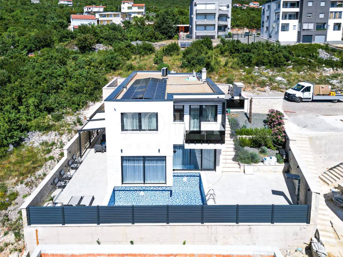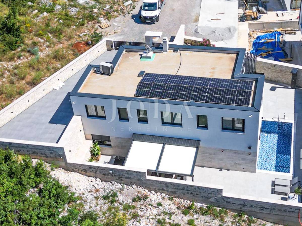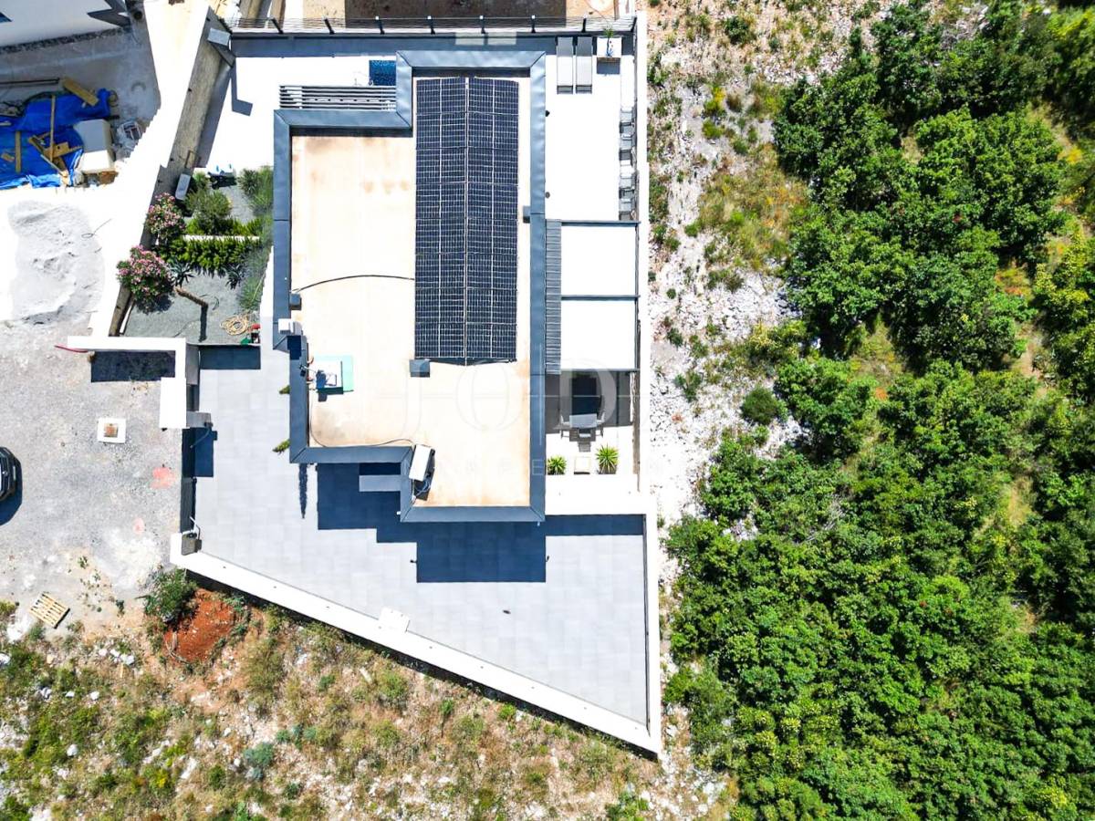 Novoizgrađena obiteljska kuća moderne arhitekture s panoramskim pogledom na more.