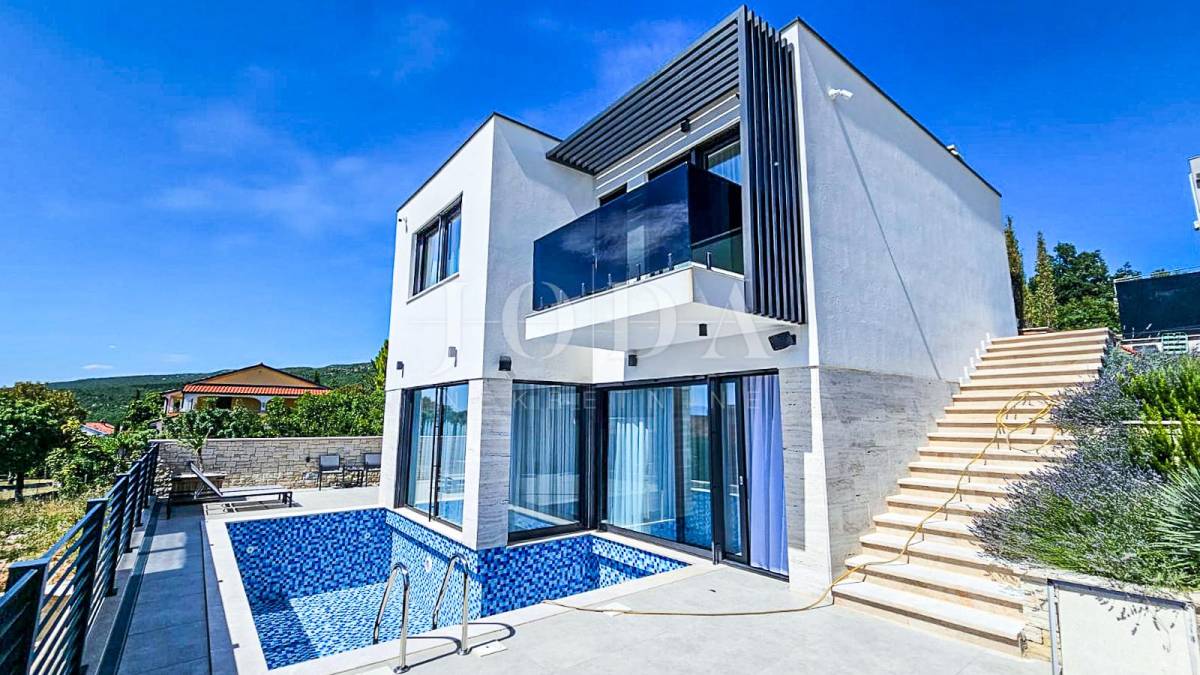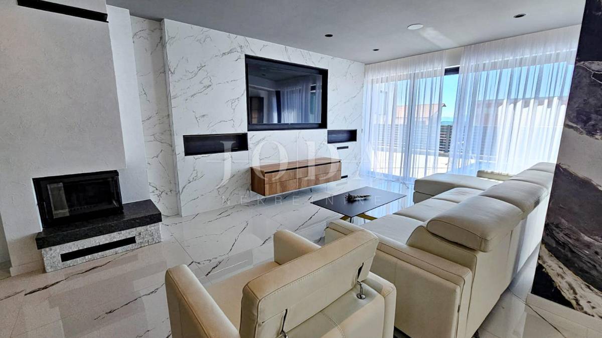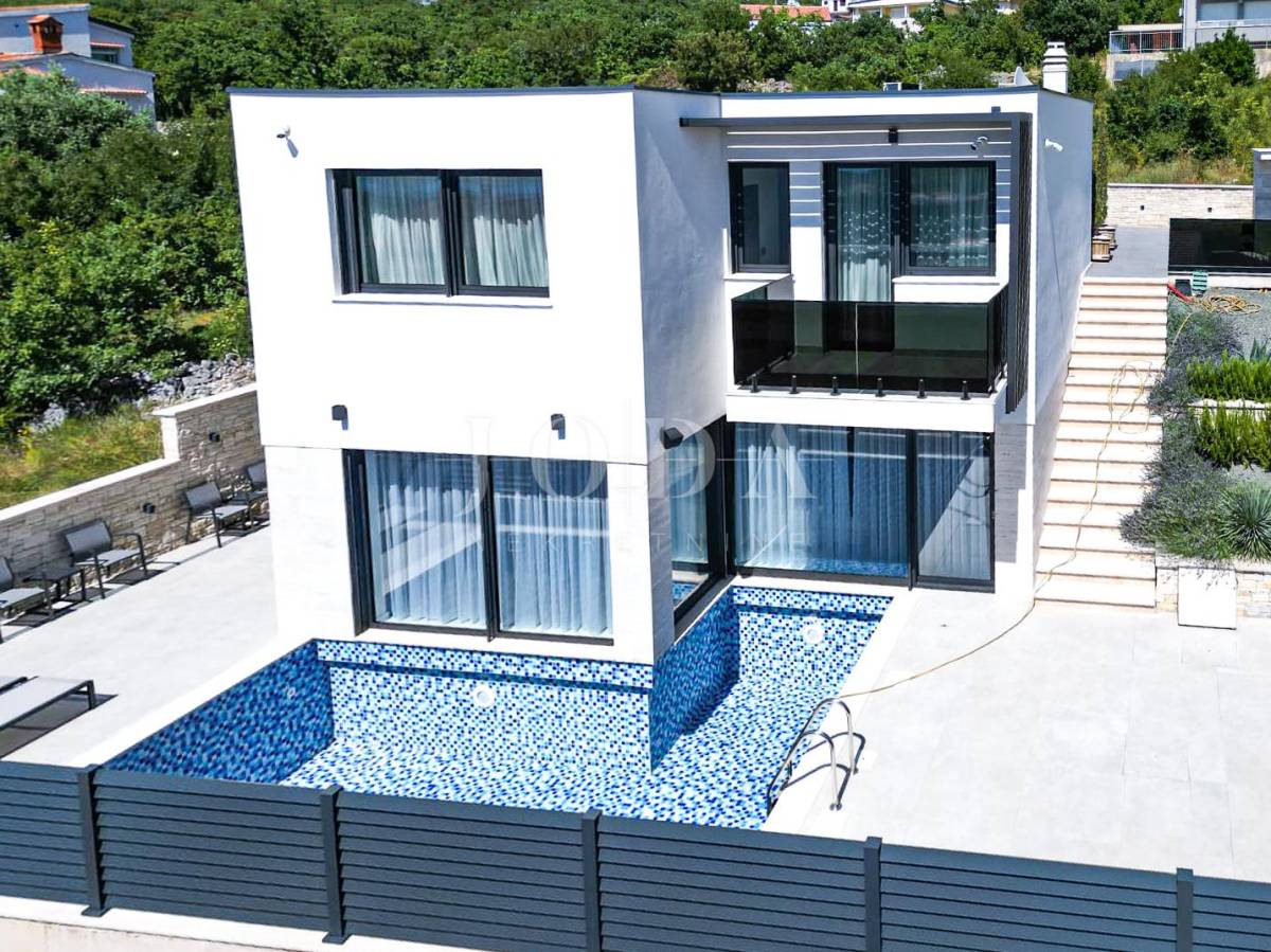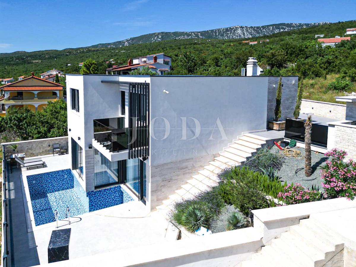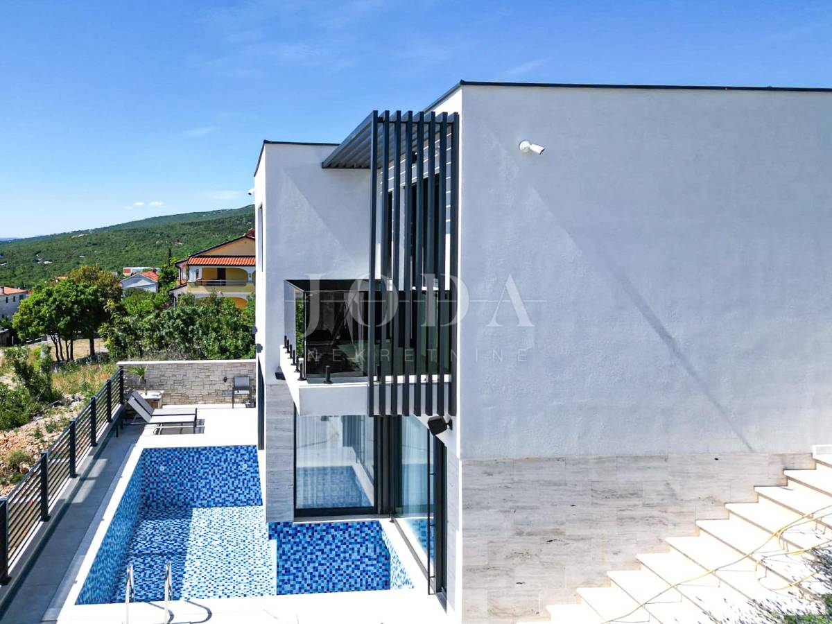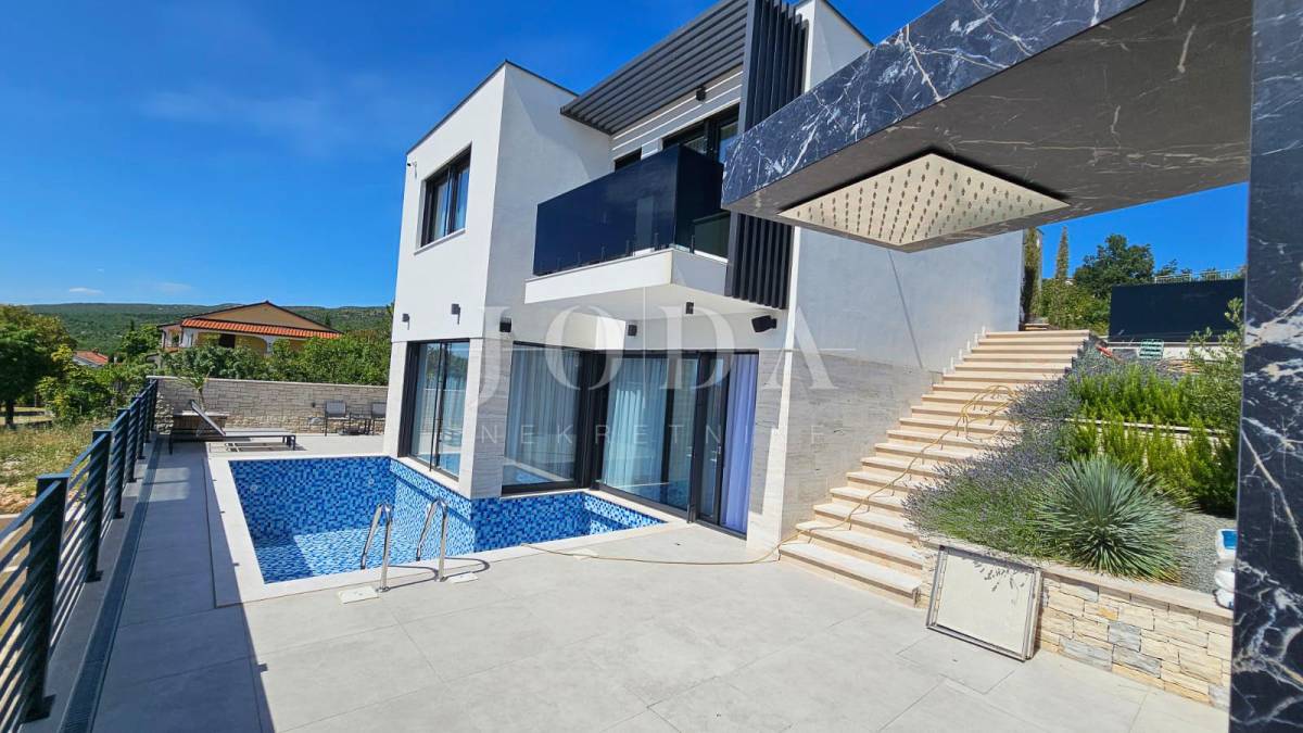 Novoizgrađena obiteljska kuća moderne arhitekture s panoramskim pogledom na more.
