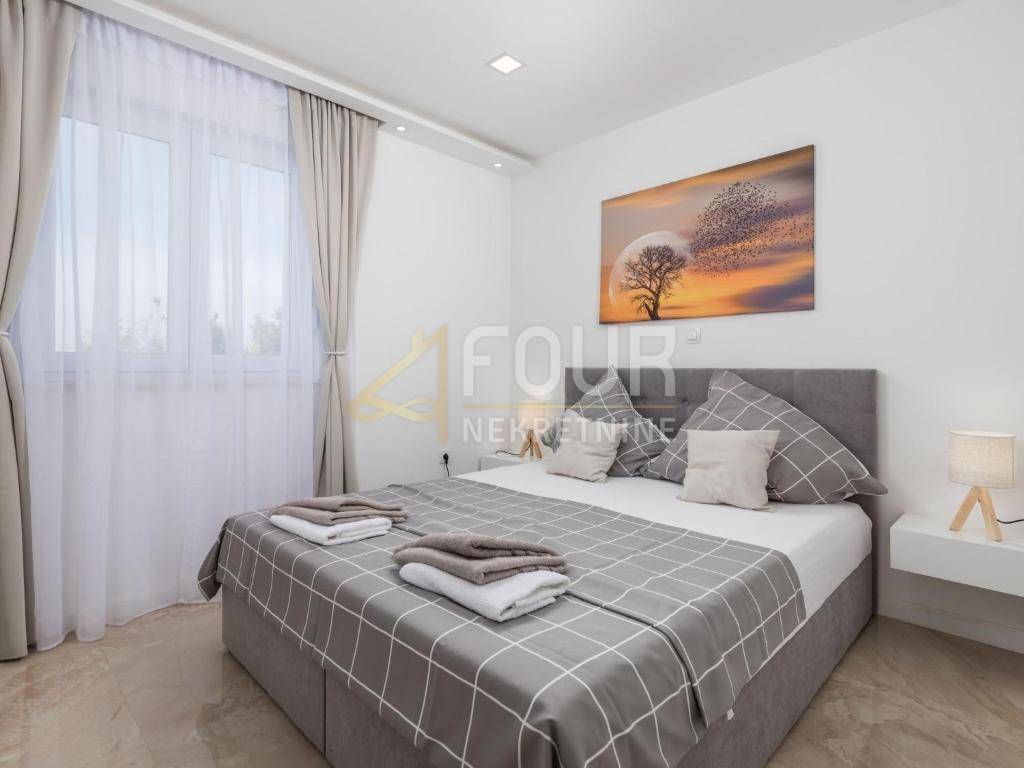 Unutrašnjost je pažljivo dizajnirana i raspoređena u jedan funkcionalan stan s ukupno šest prostorija, uključujući četiri spavaće sobe i četiri kupaonice. Prizemlje i kat nude sličan raspored – kuhinju, dnevni boravak i dvije spavaće sobe, što čini kuću idealnom za obiteljski život ili za turistički najam. Klima uređaji i PVC stolarija pružaju ugodnu i udobnu atmosferu tijekom cijele godine.