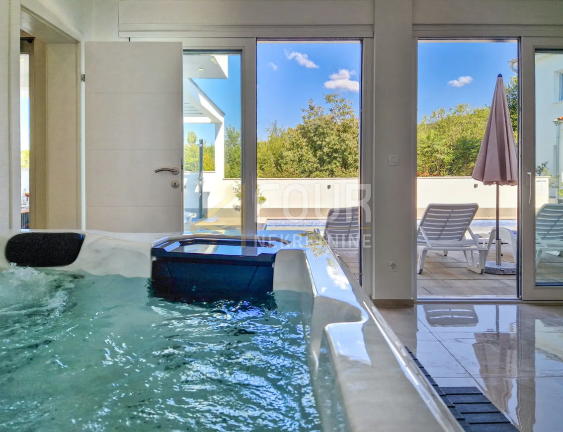 Poseban šarm ovoj nekretnini daje wellness kućica i bazen površine približno 30 m2, savršeni za opuštanje i uživanje u privatnom okruženju. Dodatnu praktičnost osiguravaju četiri parkirna mjesta.