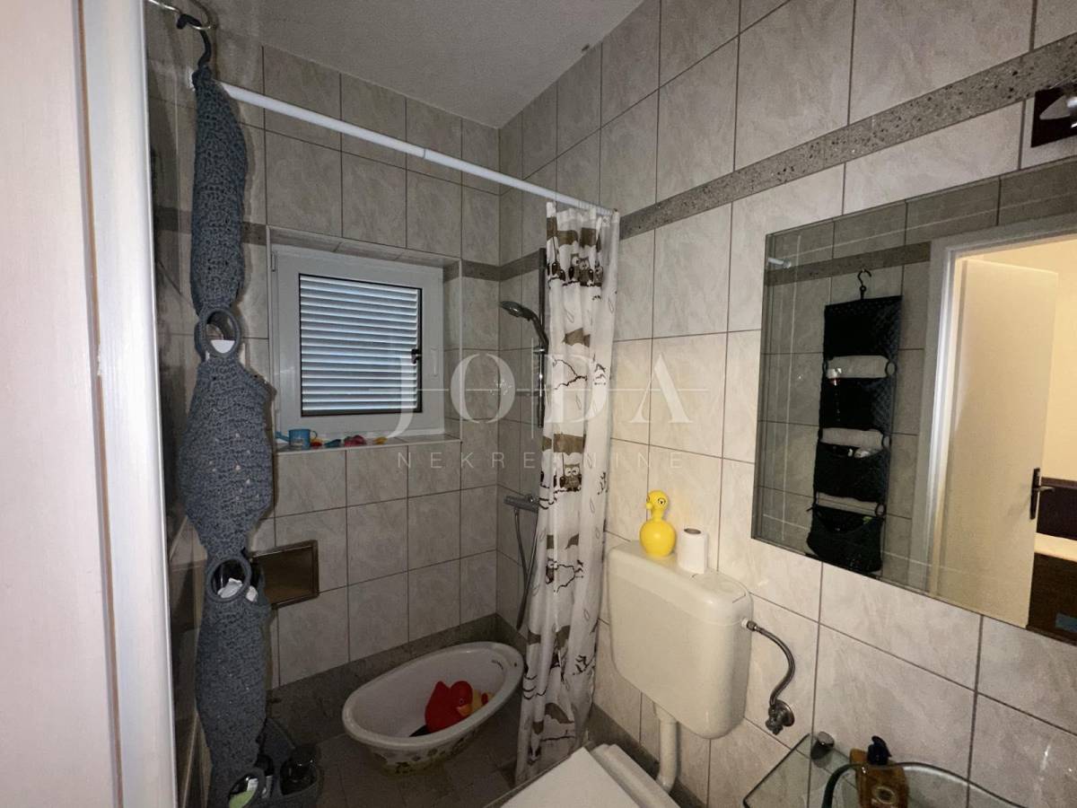 Prodajemo lijepi stan na prvom katu manje stambene zgrade od 81,45m2. Sastoji se od tri spavaće sobe, kuhinje sa blagovaonom, dnevnog boravka, dvije kupaone, wc-a, dva hodnika i terase. Stan se nalazi iznad zelene zone 300m do mora. Unutar okućnice nalazi se parkirno mjesto. Lokacija mirna i opuštajuća idealna za odmor i uživanje.