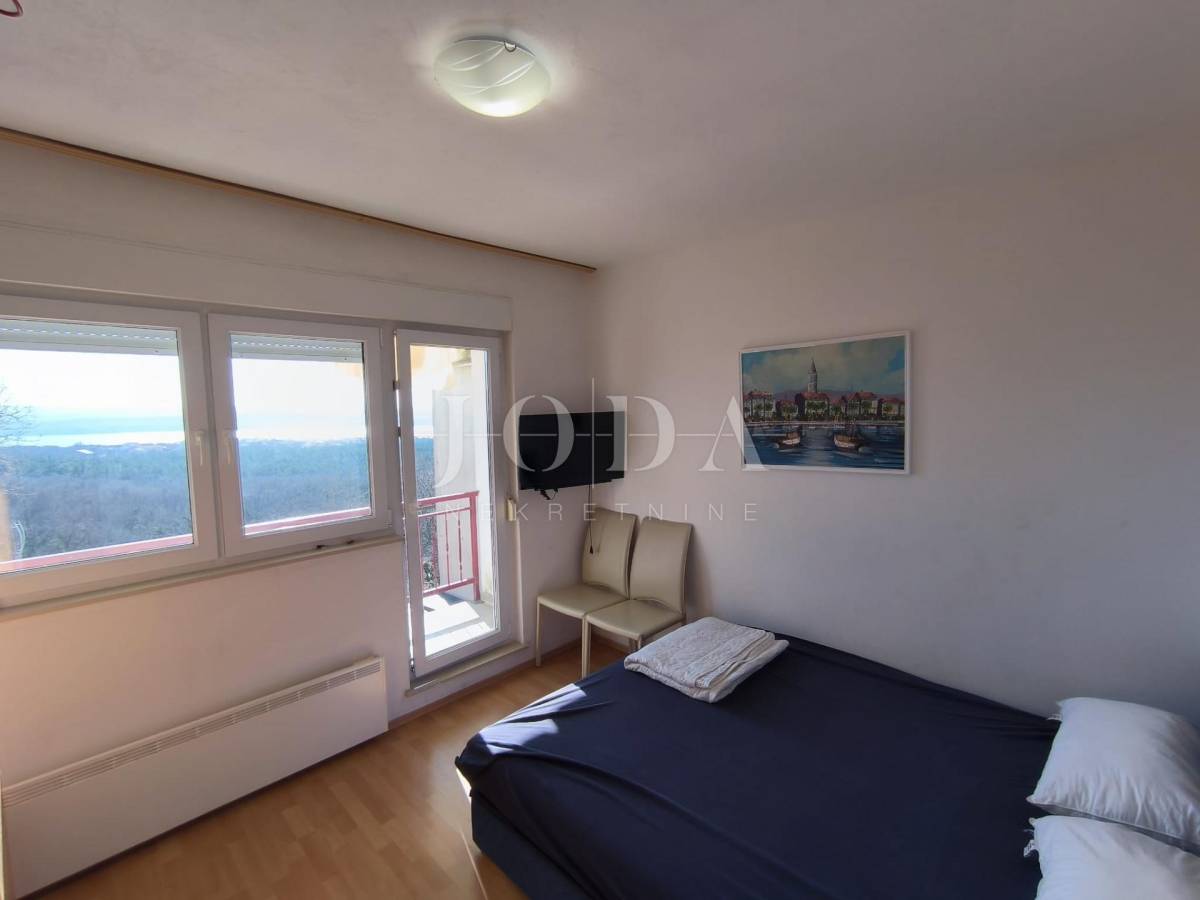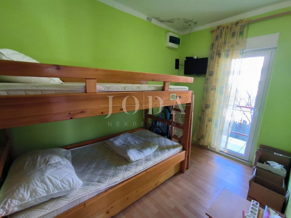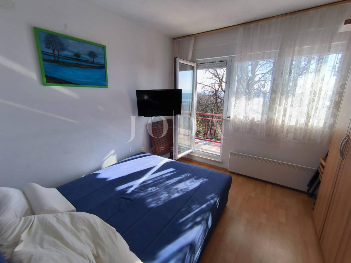 Stan se nalazi na prvom katu zgrade sa dva kata. Trosobni klasični stan od kojeg dvije sobe gledaju na jugo istok i imaju izlaz na prostrani natkriveni balkon sa kojeg se pruža pogled na Krk i cijelu rivijeru. Treća manja soba ima izlaz na manji balkon na sjevernu stranu. Ispred stana još jedna terasa sa roštiljem a jedno parkirno mjesto se nalazi u sklopu okućnice. Uređen stan veličine 43m2, kuhinja rađena po mjeri, grijanje na radijatore te instalirani klima uređaj za grijanje i hlađenje.