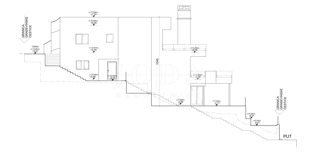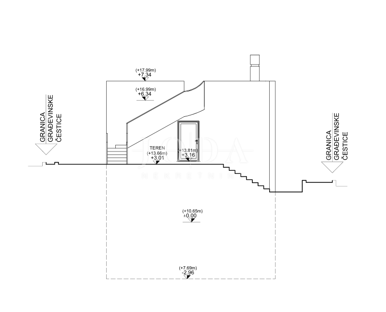 Sastoji se od 2 stambene jedinice sa 2 natkrivena ulaza!