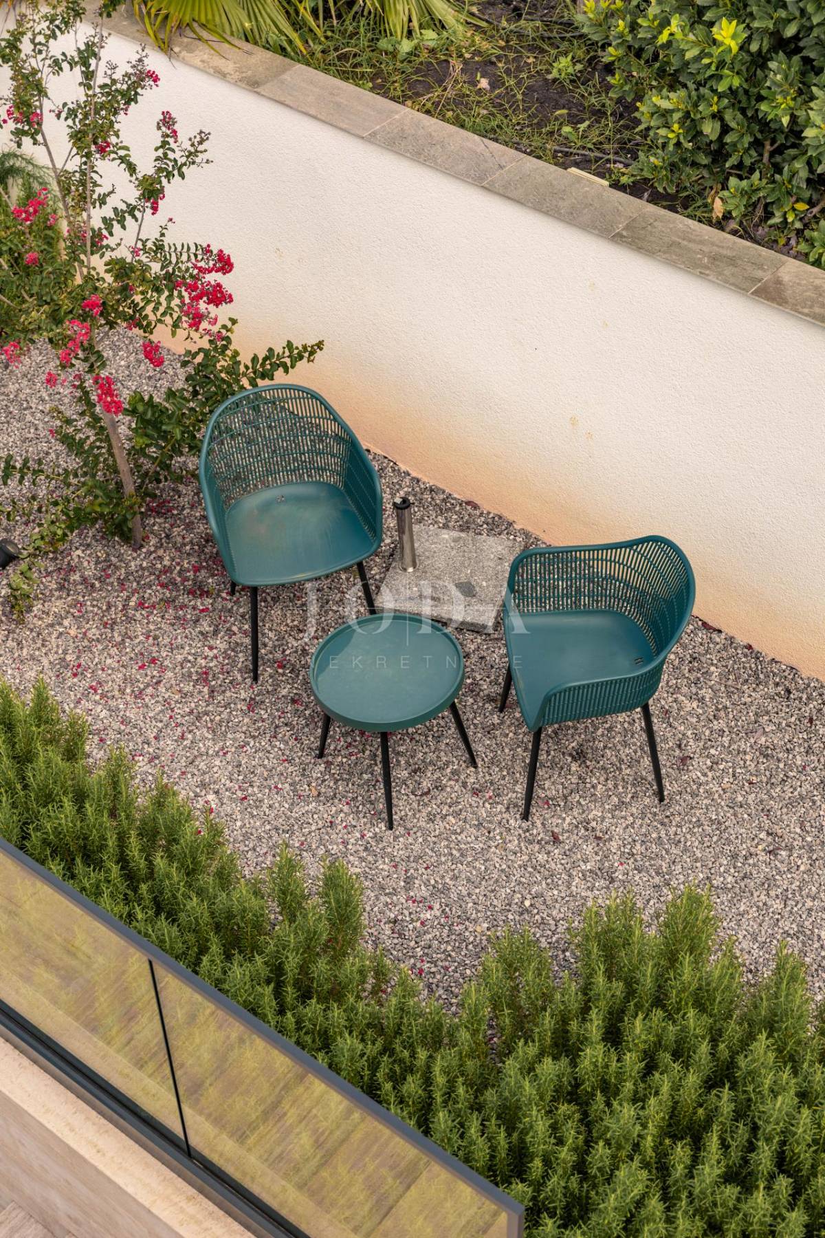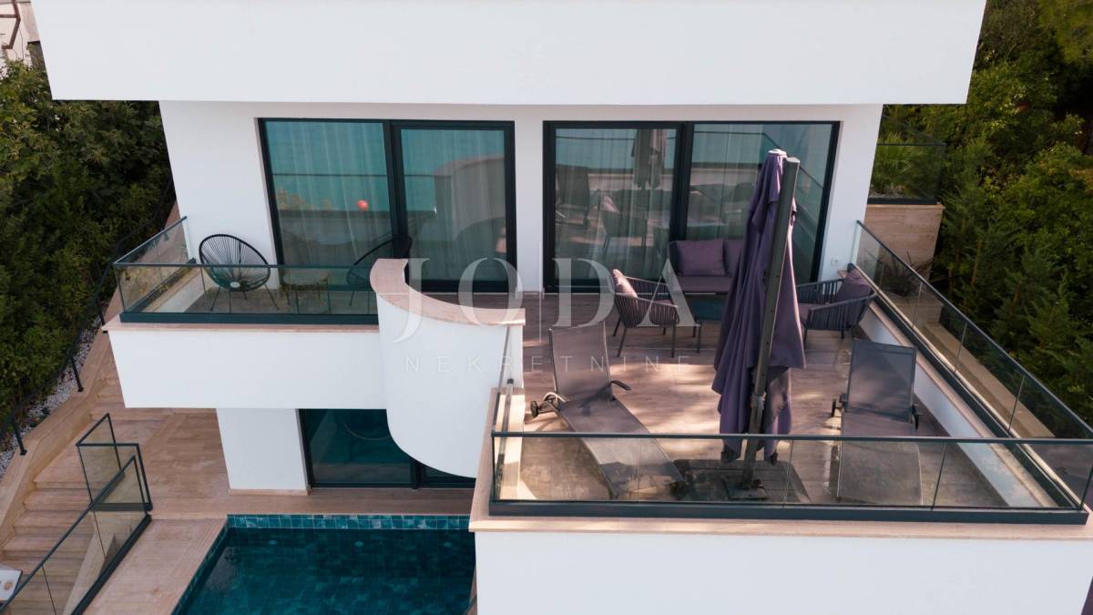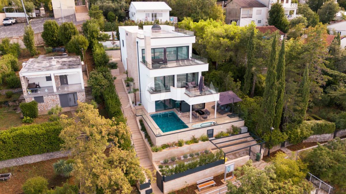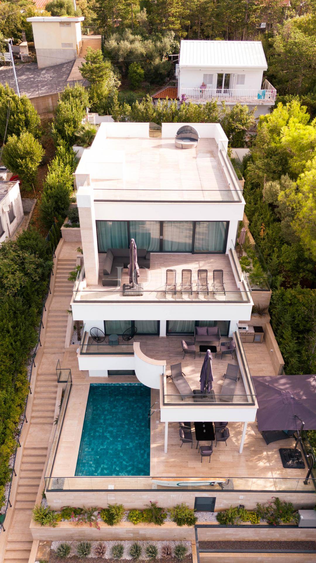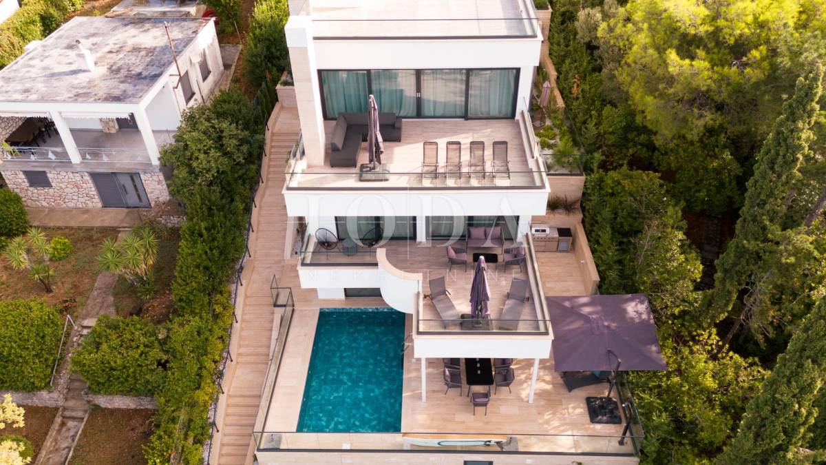 Smještena uz samo more i šetnicu(bez buke automobila),na kaskadnom terenu vila je potpuno interpolirana u okoliš.