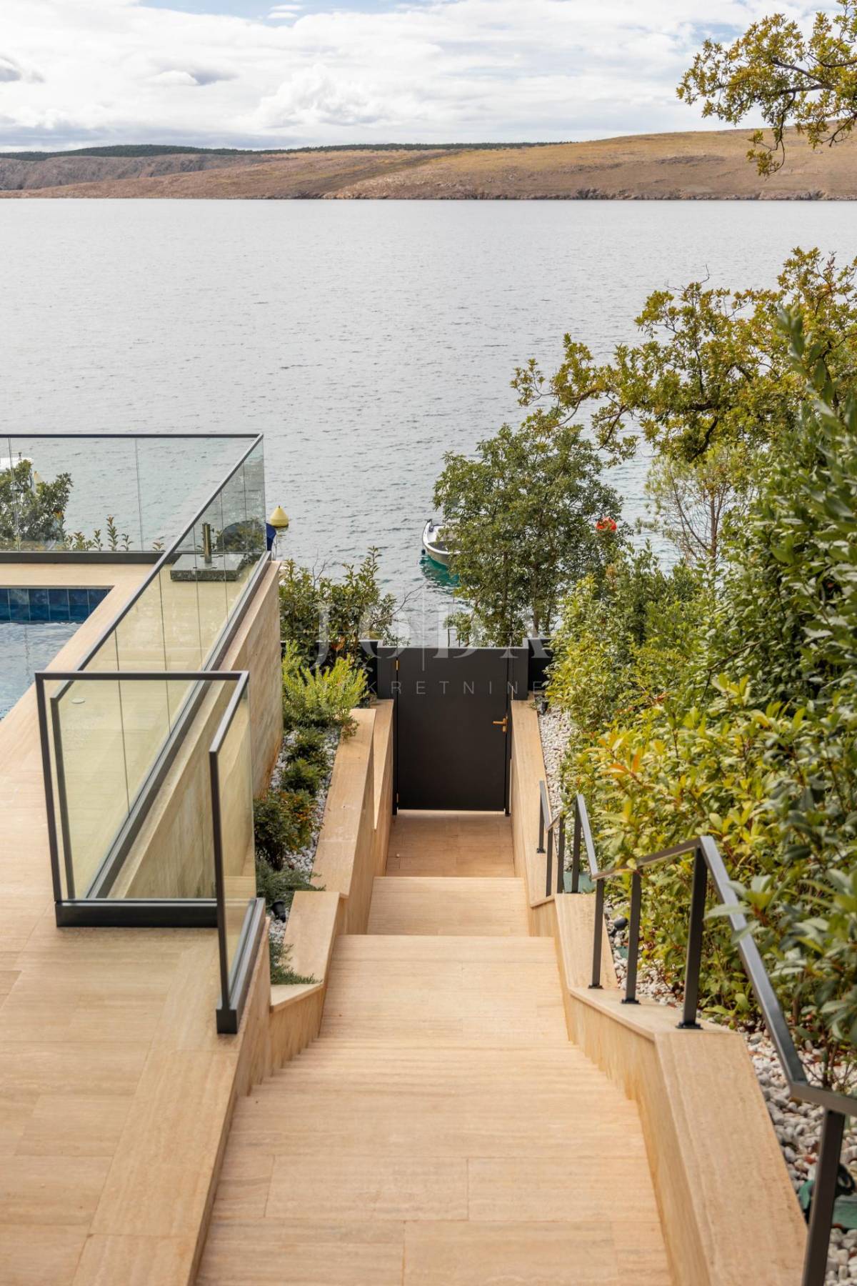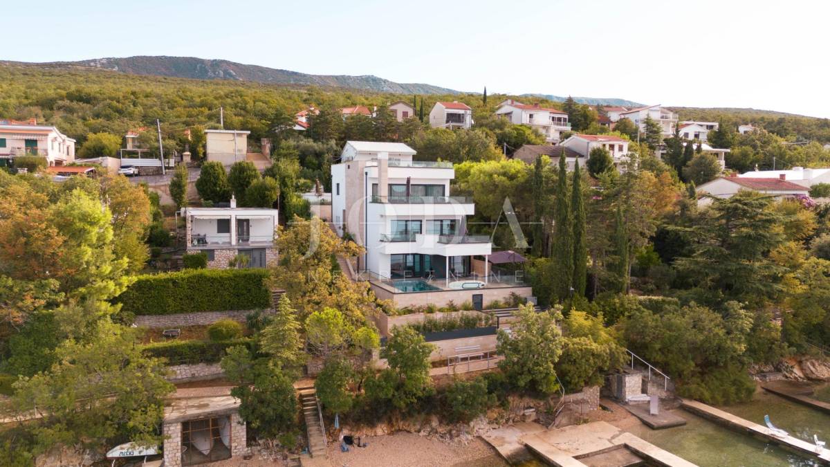 Okućnica ograđena i kultivirana sa mediteranskim vrtovima i popločana kamenom.Ispred same vile je manja plažica i mul na kojem je vez za gliser.Prekrasna rezidencijalna zona čini ovu nekretninu posebnom na crikveničkoj rivijeri.