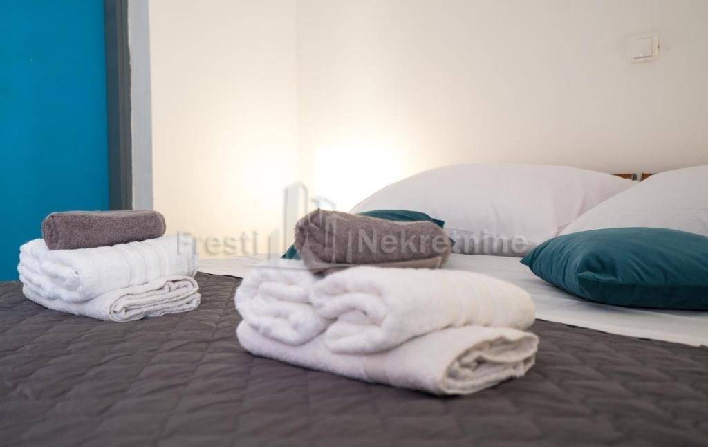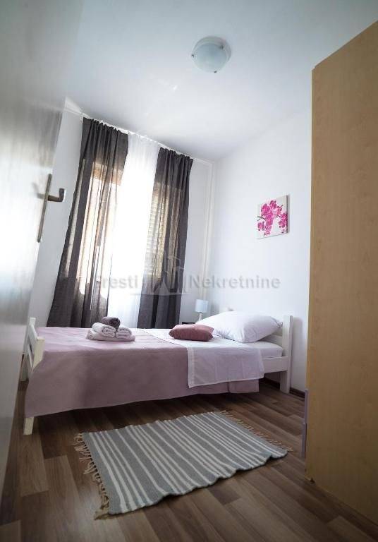 ISTAKNUTA CIJENA VRIJEDI ZA KUPCE KOJI KUPUJU BEZ BANOVNOG KREDITA VEZANOG UZ NEKRETNINU! Prodaje se komforan, jako lijepo namješten stan na atraktivnoj lokaciji Jazine, Zadar. Stan se prostire na 86 m² stambenog prostora i 141m2 okućnice. Nudi savršen spoj udobnosti i funkcionalnosti. Sastoji se od prostranog otvorenog dnevnog boravka s blagovaonicom i moderno opremljene kuhinje, dvije udobne spavaće sobe, dvije kupaonice s kadom, tušem i toaletom, prostranog hodnika, opreme za roštilj i terase. Stan je kompletno opremljen kvalitetnim uređajima . Sve instalacije (struja, voda) su nove. Visokokvalitetni materijali koriste se u cijelom stanu, odlični prozori i vrata. Stan zbog svoje orijentacije obiluje sunčevom svjetlošću. _______________________________________________________ Stan je spreman za useljenje ili iznajmljivanje. ( uhodan u turističkom najmu, ima kategorizaciju). Nalazi se na jednoj od najboljih lokacija u Zadru – samo 10 minuta hoda do centra grada i 15 minuta od plaže. U neposrednoj blizini stana nalazi se City galleria, tržnica, ribarnica, mesnica, ljekarna, pošta, škola, sveučilišta, više liječničkih ambulanti, športsko-rekreativni sadržaji, popoularni sadržaji: Muzej antičkog stakla, Muzej iluzija... Stanu pripada i popločana okućnica netto površine 141 m2 što dodatno povećava vrijednost stana. Ovo je idealna prilika za sve one koji traže udoban životni prostor blizu mora i svih gradskih sadržaja. _______________________________________________________