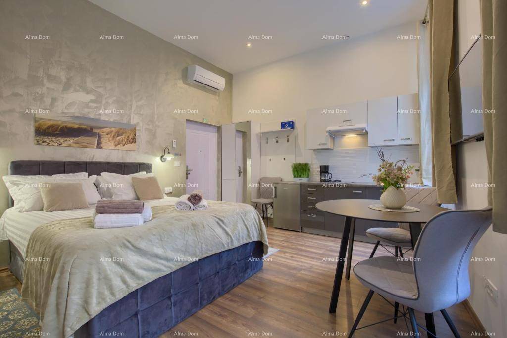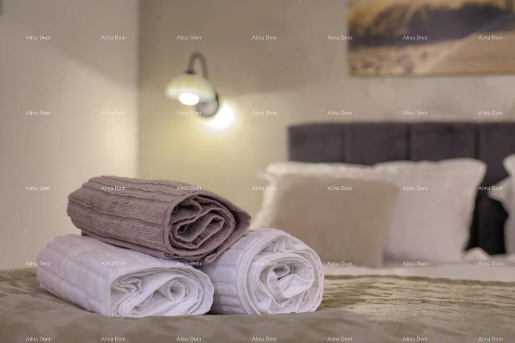 Svaki apartman ima jednu spavaću sobu, dnevni boravak sa kuhinjom, kupatilo. Sve je kompletno namješteno do svakog detalja, sitnice koja je potrebna za rentanje apartmana. Iz hodnika se zasebno ulazi u jednu veliku prostoriju, trenutno namjenjena za druženje iz koje se izlazi na veliku tersu od cca 40 m2.