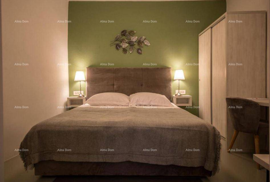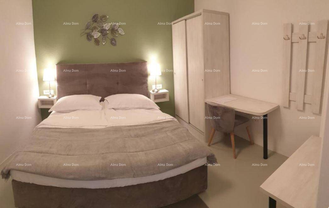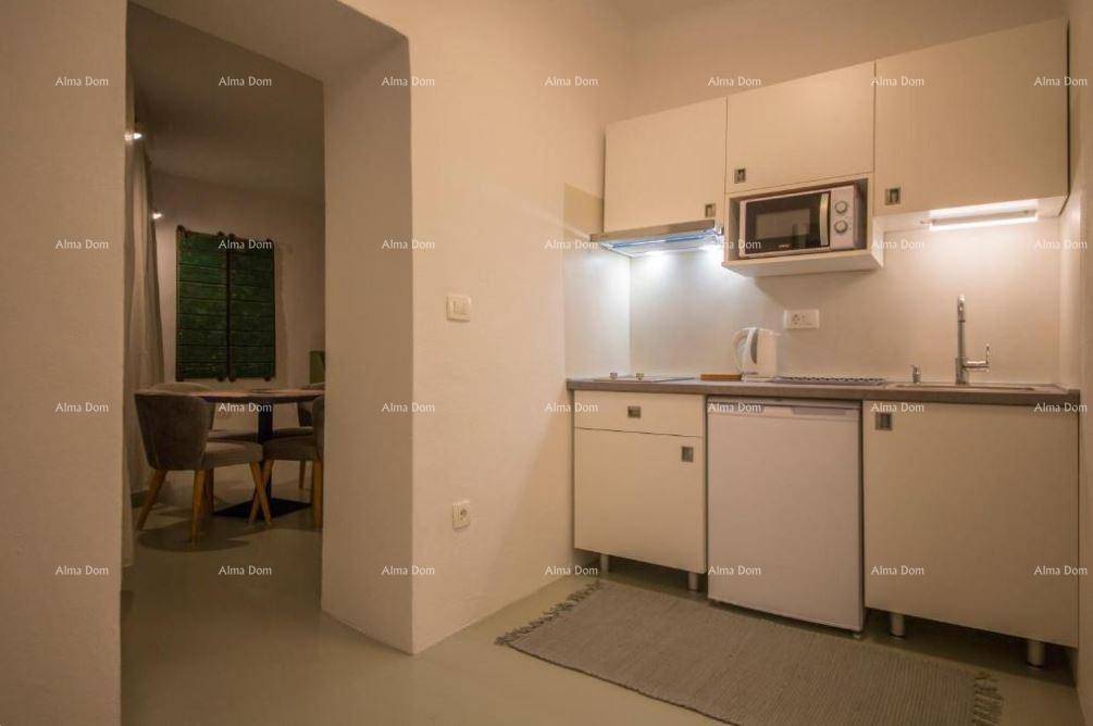 Stan od 49.05 m2 nalazi se u centru Rovinja s pogledom na grad u mirnoj pedastrijskoj zoni na 1. katu stoljetne kamene kuće. Stan se sastoji od dnevnog boravka, kuhinje, kupaonice te spavaće sobe.