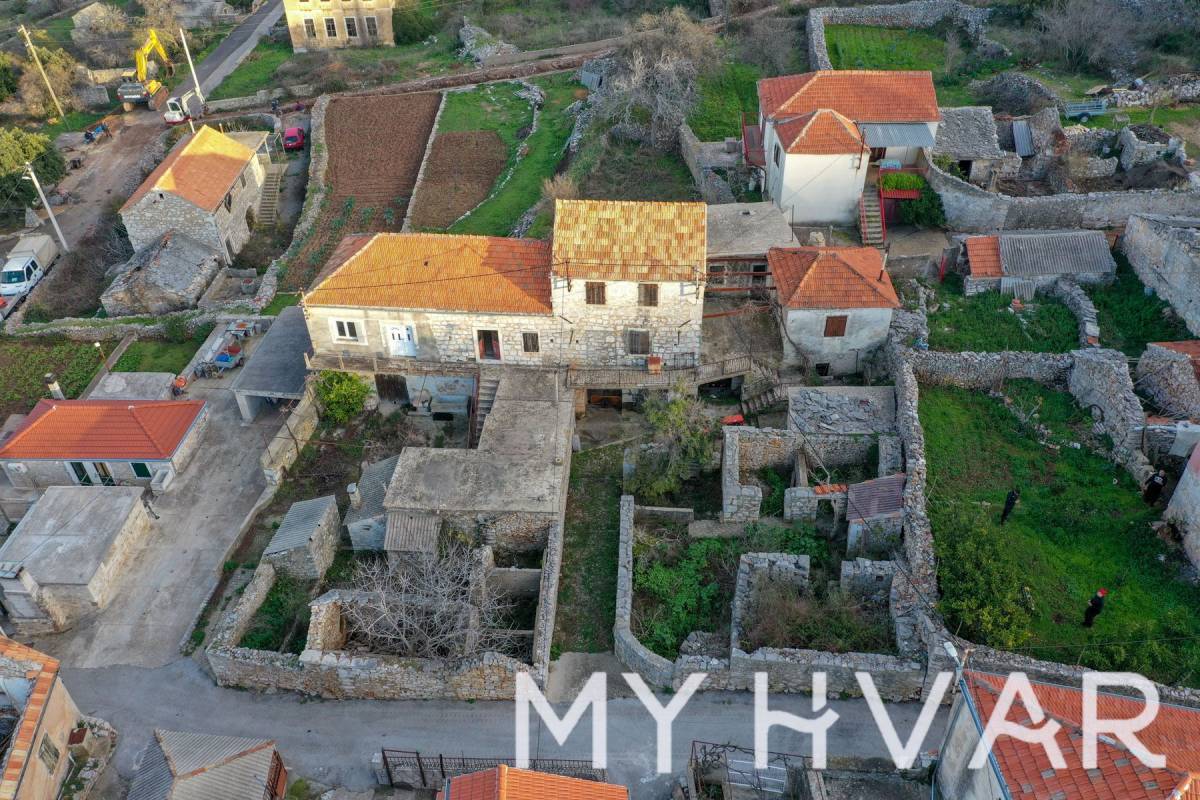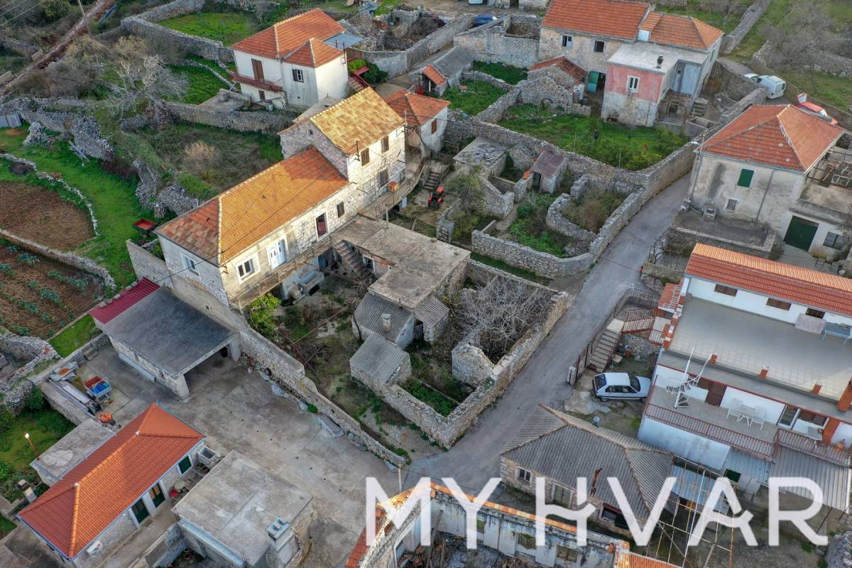 Nekretnina se sastoji od tri odvojene nekretnine, od kojih svaka doprinosi svom jedinstvenom šarmu. Glavna kuća, površine 509 m², ima divan dnevni boravak i prostrano kameno dvorište. Druga parcela, povoljno smještena uz prvu, nadopunjuje cjelinu, dok treća parcela, udaljena otprilike 100 metara, služi kao raznovrstan parking.