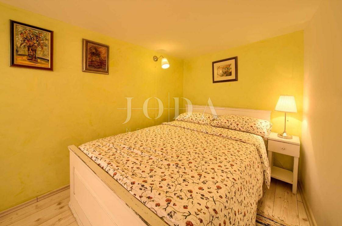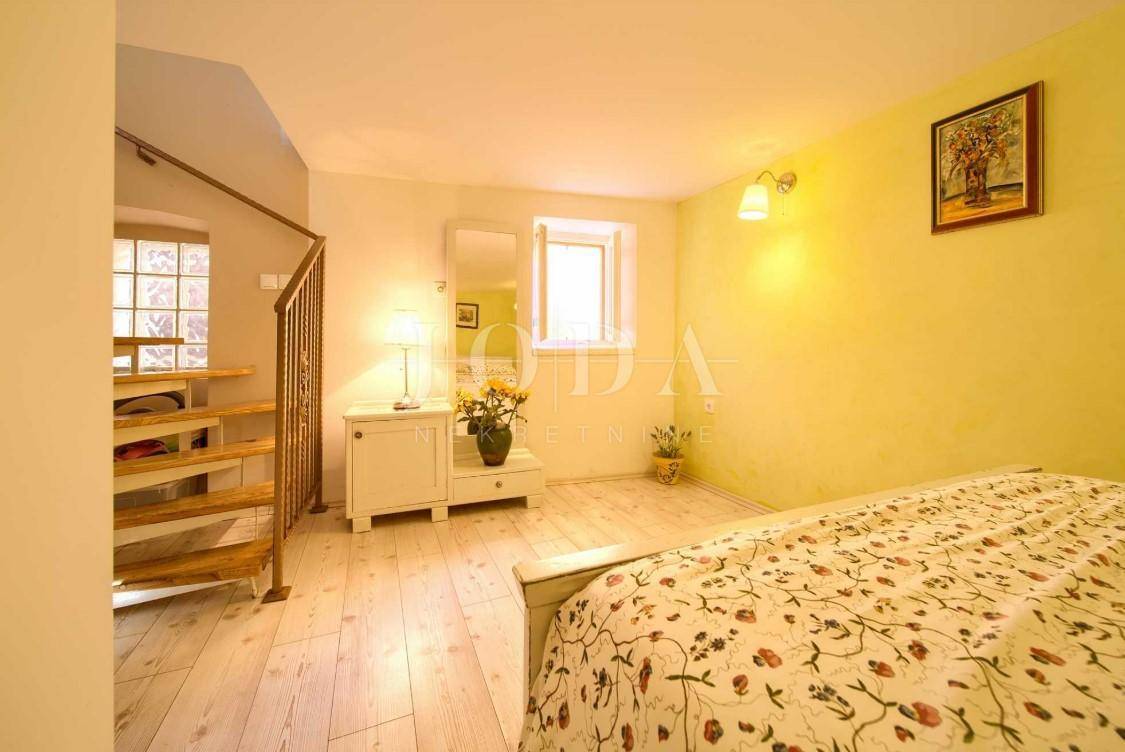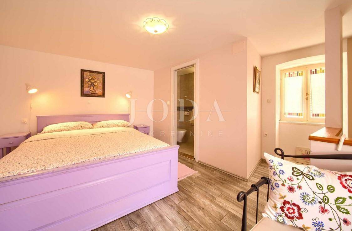 U prizemlju kuće je ulazna terasa s ulaskom u dnevnu sobu sa kuhinjom i blagovaonom. Na prvom i drugom katu su po jedna spavaća soba s kupaonicom. Etaže su povezane unutarnjim stepenicama, a podrumska etaža ima odvojeni ulaz uz mogućnost povezivanja s ostatkom stambenog prostora. Prodaje se kompletno namještena i spremna za korištenje. Prilika za kupovinu nekretnine u staroj jezgri nedaleko od svih potrebnih sadržaja.