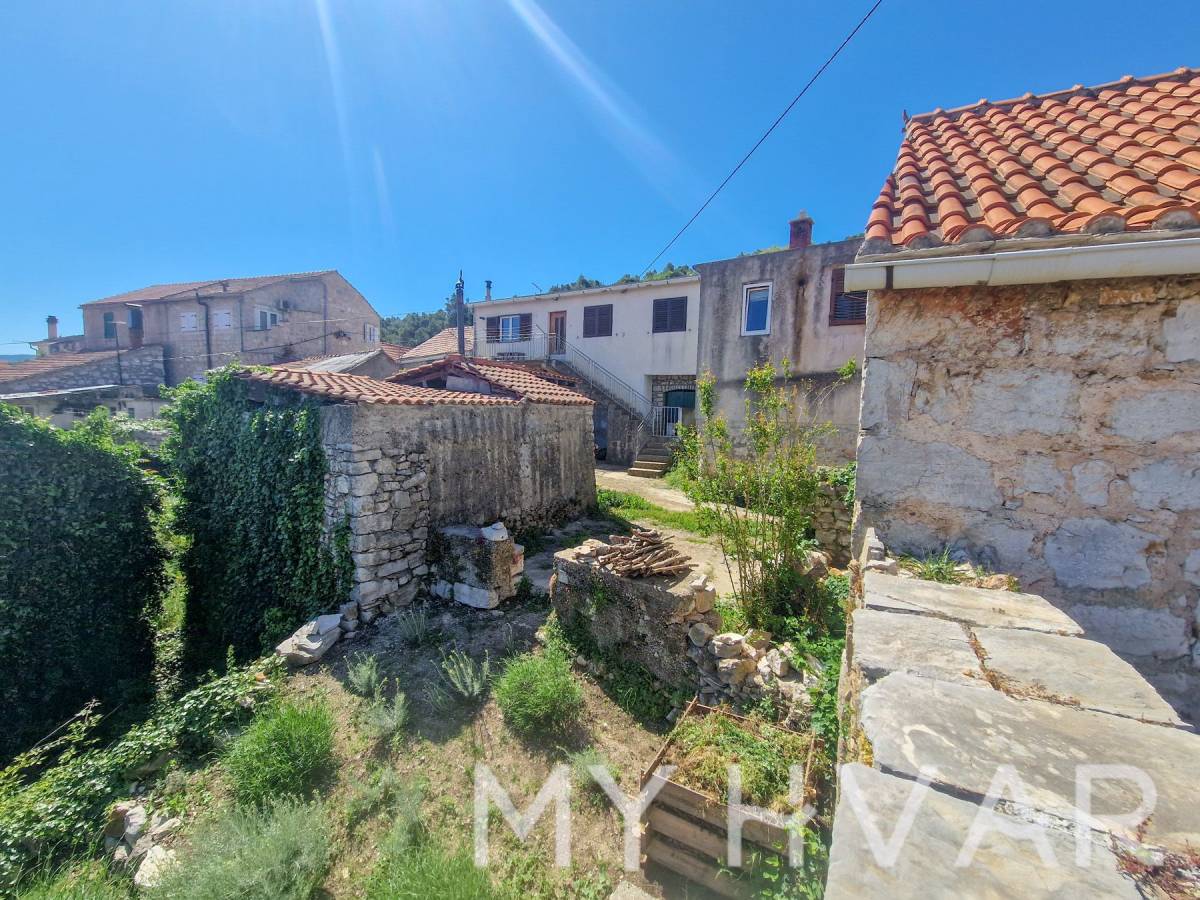Posebnost ove nekretnine je što uključuje dvije stare cisterne za vodu, što pruža dodatni potencijal za prenamjenu u vinski podrum ili dodatno spremište. Vanjski prostor sastoji se od vrta od 69 m² i parkirnog mjesta, s ukupnom površinom okućnice (vrt plus terasa) od 98 m². Ova kuća idealna je za sve koji žele obnoviti povijesni dom s autentičnim dalmatinskim karakterom, bilo kao privatnu rezidenciju ili šarmantno utočište za odmor, sve u mirnom seoskom okruženju blizu Starog Grada i prekrasnih plaža otoka.