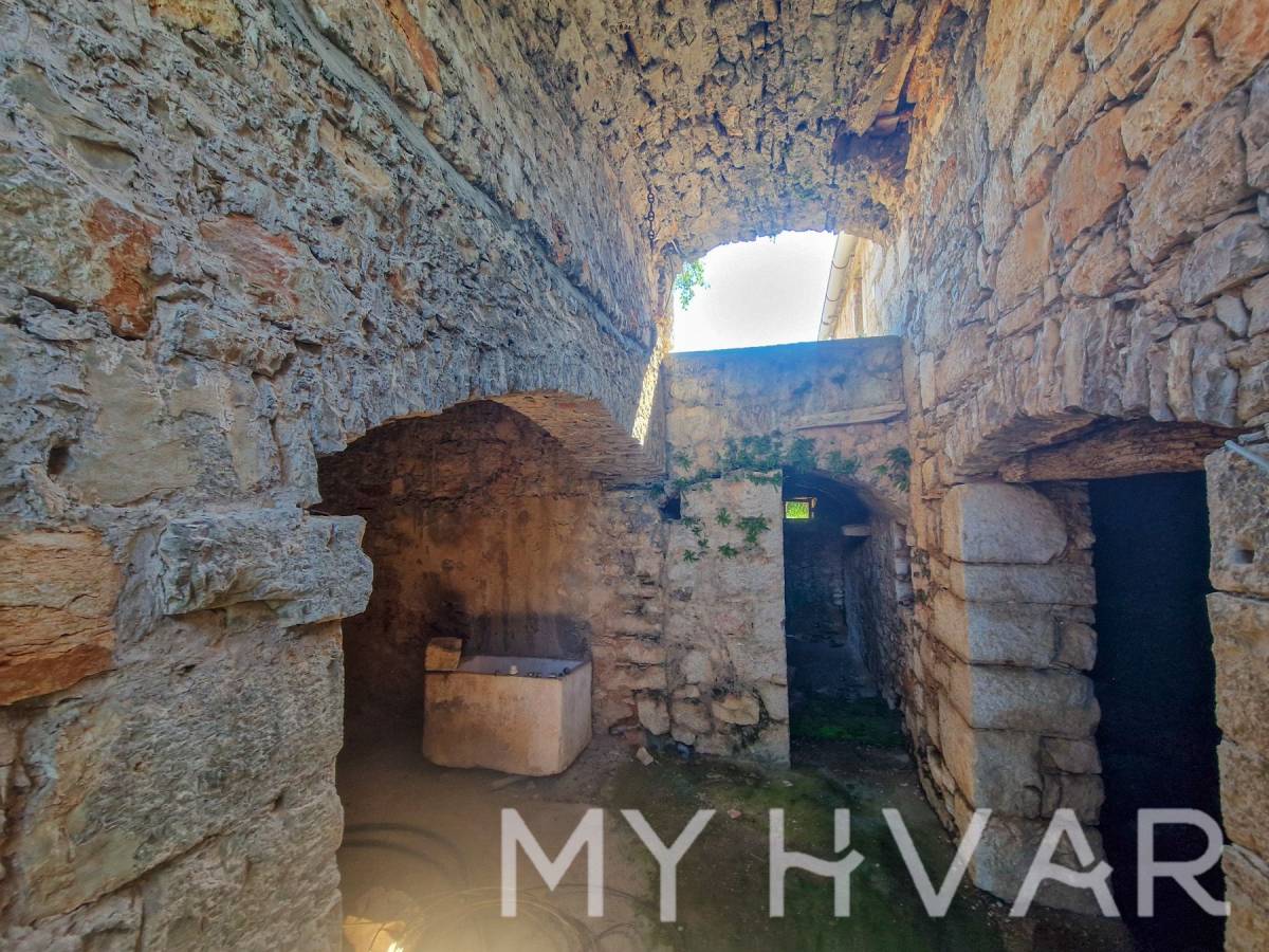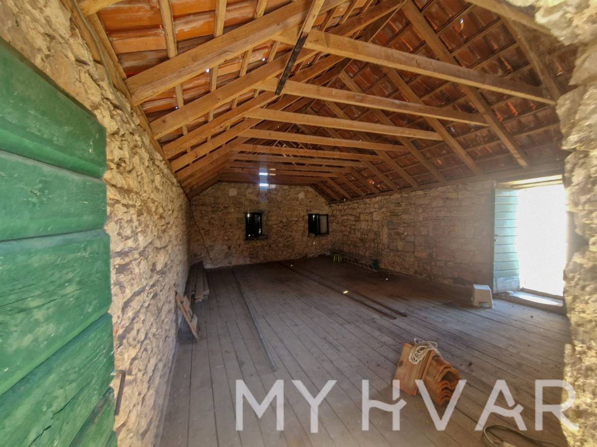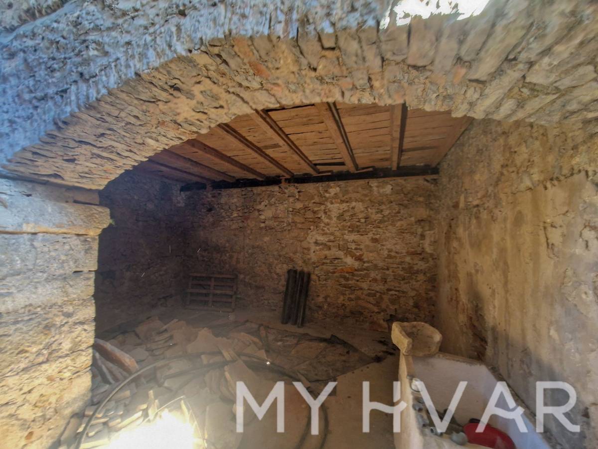 Posebnost ove nekretnine je što uključuje dvije stare cisterne za vodu, što pruža dodatni potencijal za prenamjenu u vinski podrum ili dodatno spremište. Vanjski prostor sastoji se od vrta od 69 m² i parkirnog mjesta, s ukupnom površinom okućnice (vrt plus terasa) od 98 m². Ova kuća idealna je za sve koji žele obnoviti povijesni dom s autentičnim dalmatinskim karakterom, bilo kao privatnu rezidenciju ili šarmantno utočište za odmor, sve u mirnom seoskom okruženju blizu Starog Grada i prekrasnih plaža otoka.