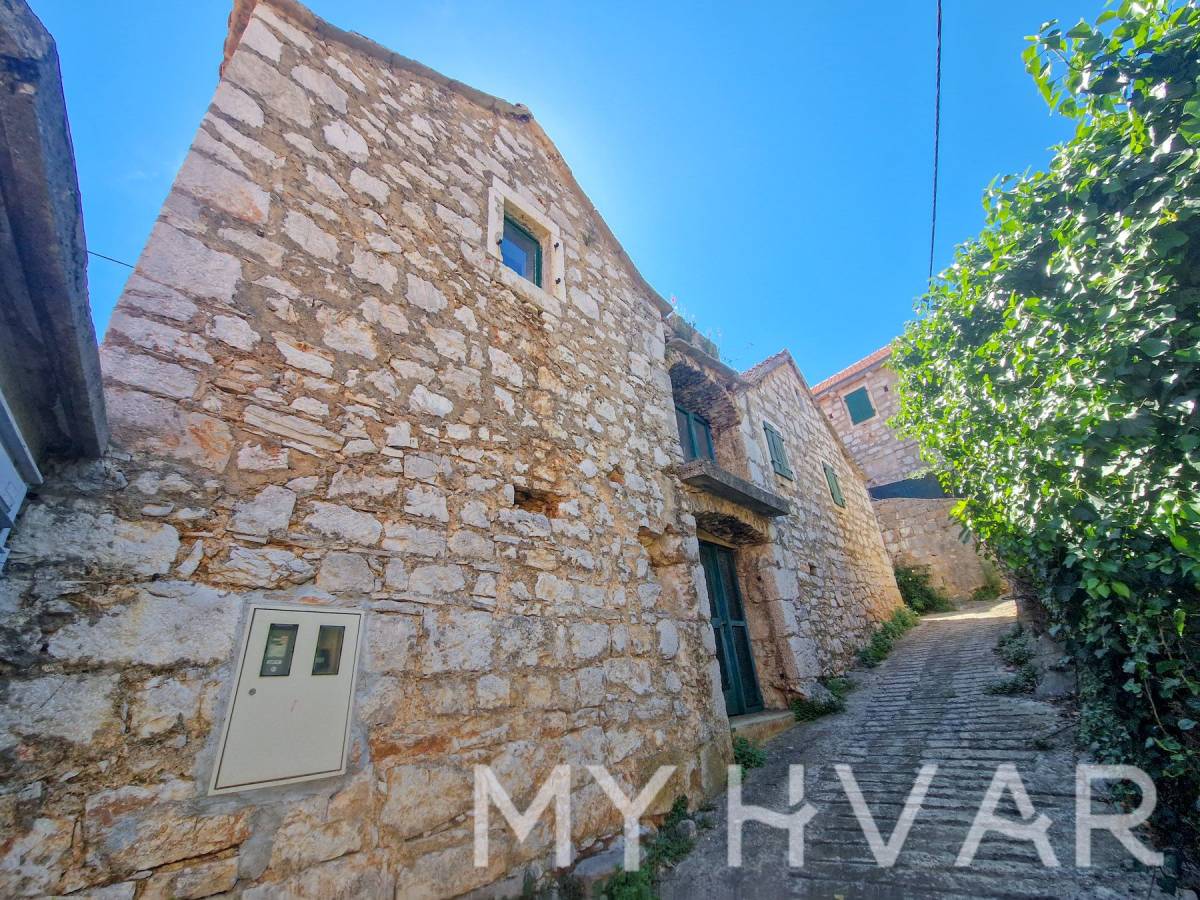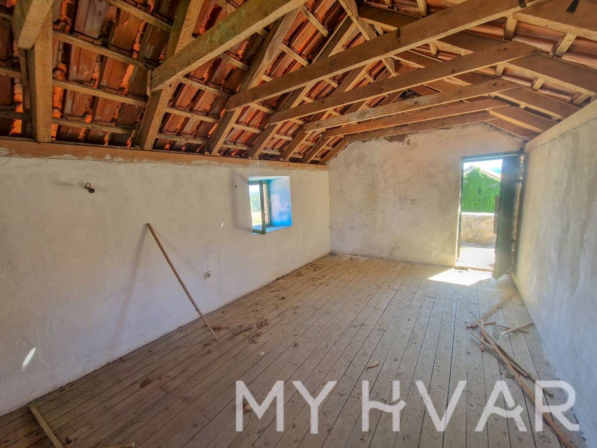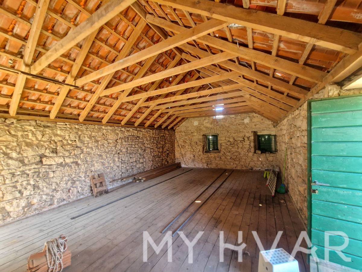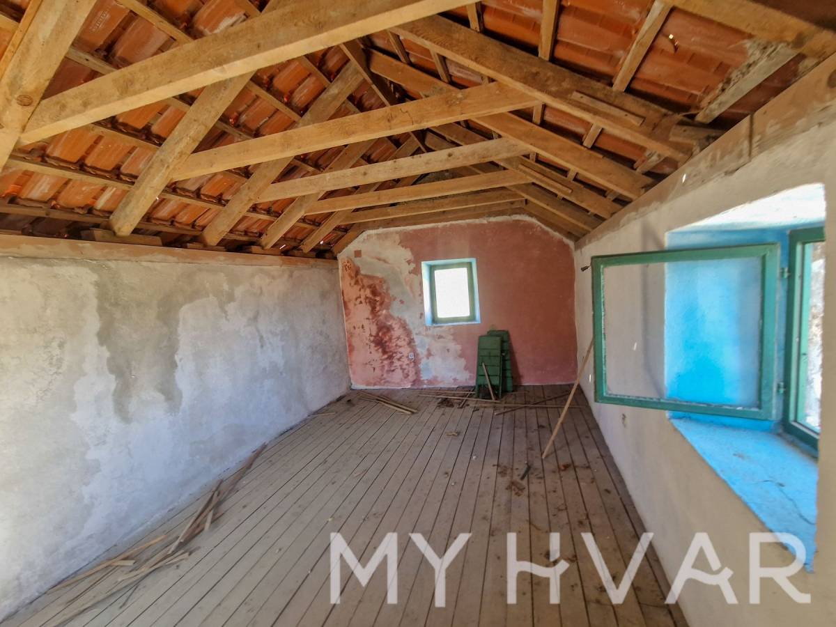 Posebnost ove nekretnine je što uključuje dvije stare cisterne za vodu, što pruža dodatni potencijal za prenamjenu u vinski podrum ili dodatno spremište. Vanjski prostor sastoji se od vrta od 69 m² i parkirnog mjesta, s ukupnom površinom okućnice (vrt plus terasa) od 98 m². Ova kuća idealna je za sve koji žele obnoviti povijesni dom s autentičnim dalmatinskim karakterom, bilo kao privatnu rezidenciju ili šarmantno utočište za odmor, sve u mirnom seoskom okruženju blizu Starog Grada i prekrasnih plaža otoka.