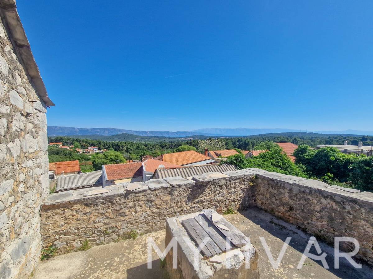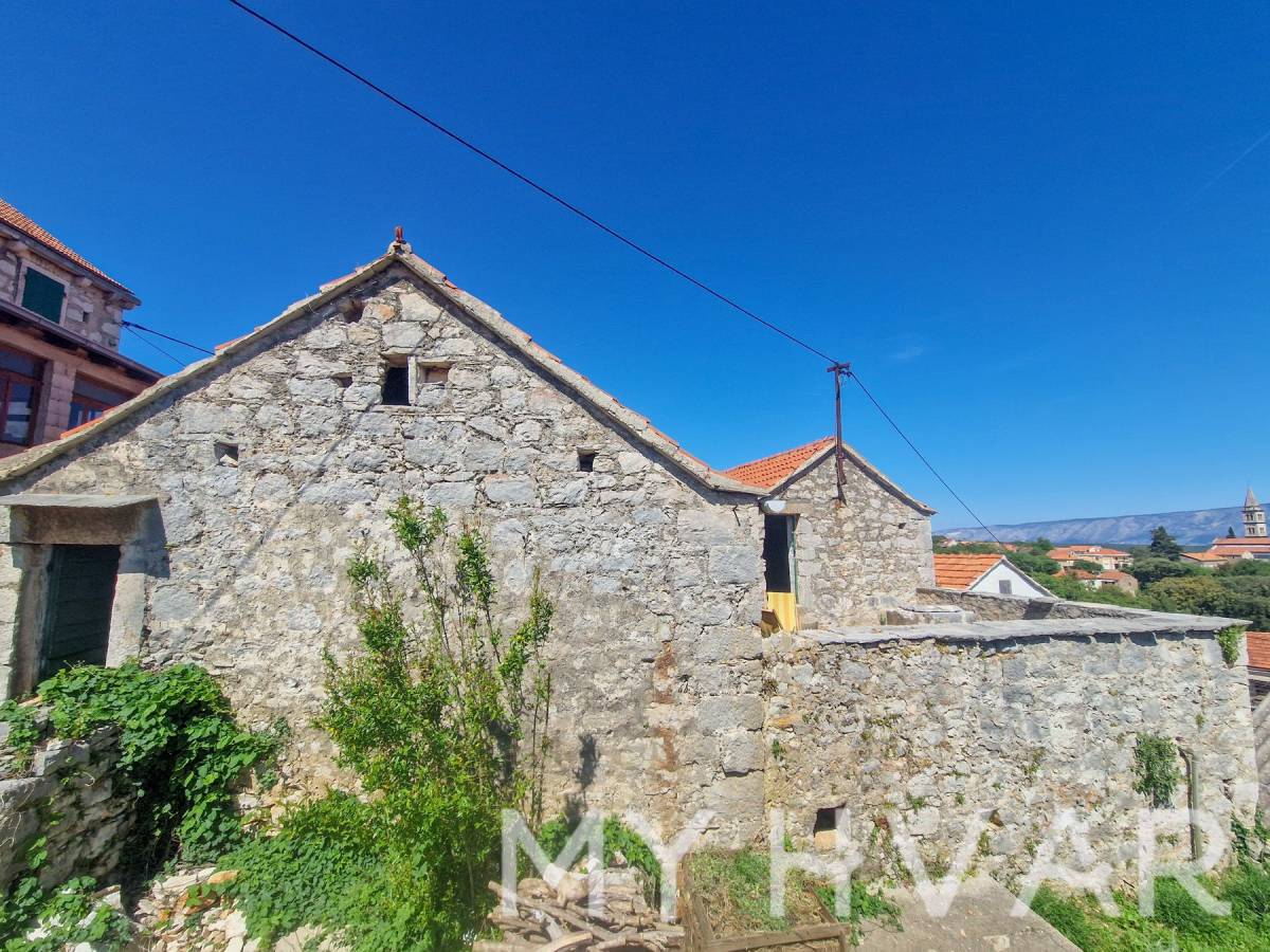 Ova tradicionalna dalmatinska kamena kuća u mirnom selu Vrbanj nudi iznimnu priliku za potpunu obnovu. Nekretnina se sastoji od masivnih kamenih zidova i prostire se na otprilike 240 m² ukupnog stambenog prostora nakon obnove. U prizemlju se nalaze tri povezane sobe, dok vanjske stepenice u dvorištu vode na prvi kat, koji sadrži dvije sobe i prostranu terasu od oko 29 m². S terase se pruža prekrasan pogled na more i otok Brač.