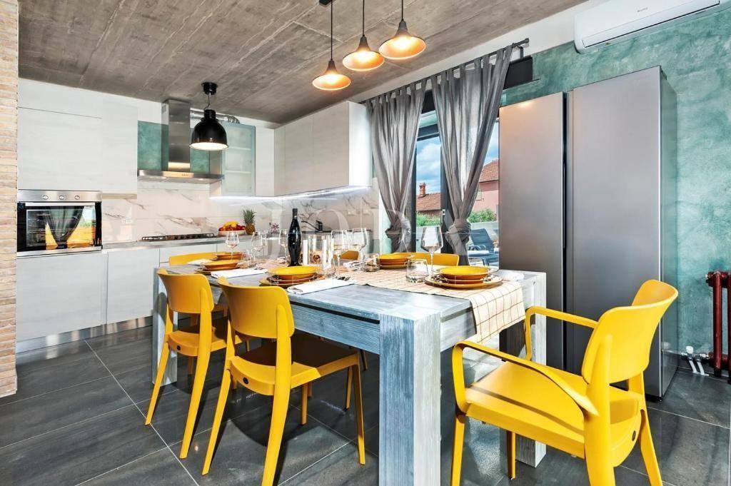 Kuća je kompletno namještena i opremljena, postavljeni su klima uređaji, podno grijanje, te centralni sustav usisavanja.