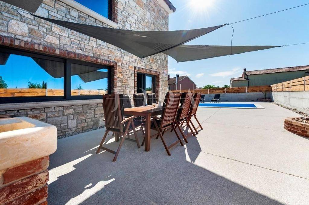 Na mirnoj lokaciji, svega 15 kilometara od Rovinja i rovinjskih plaža, nalazi se ova kamena kuća sa bazenom.