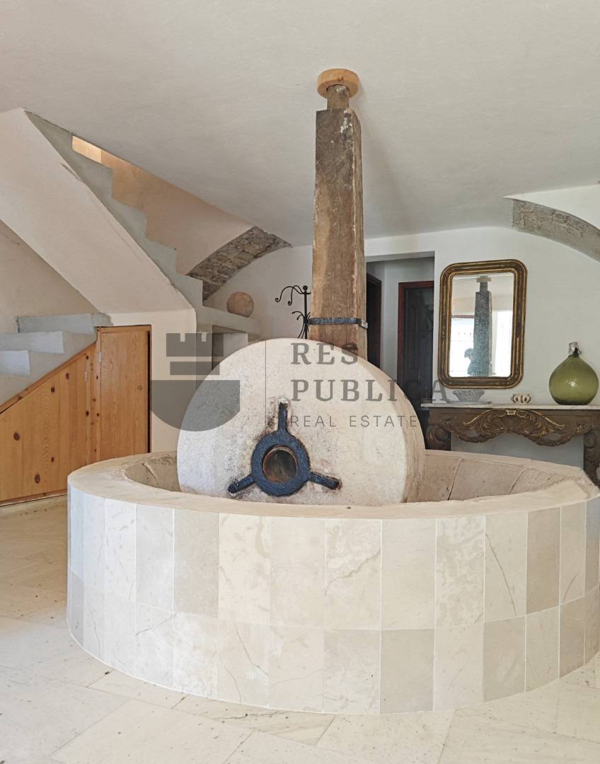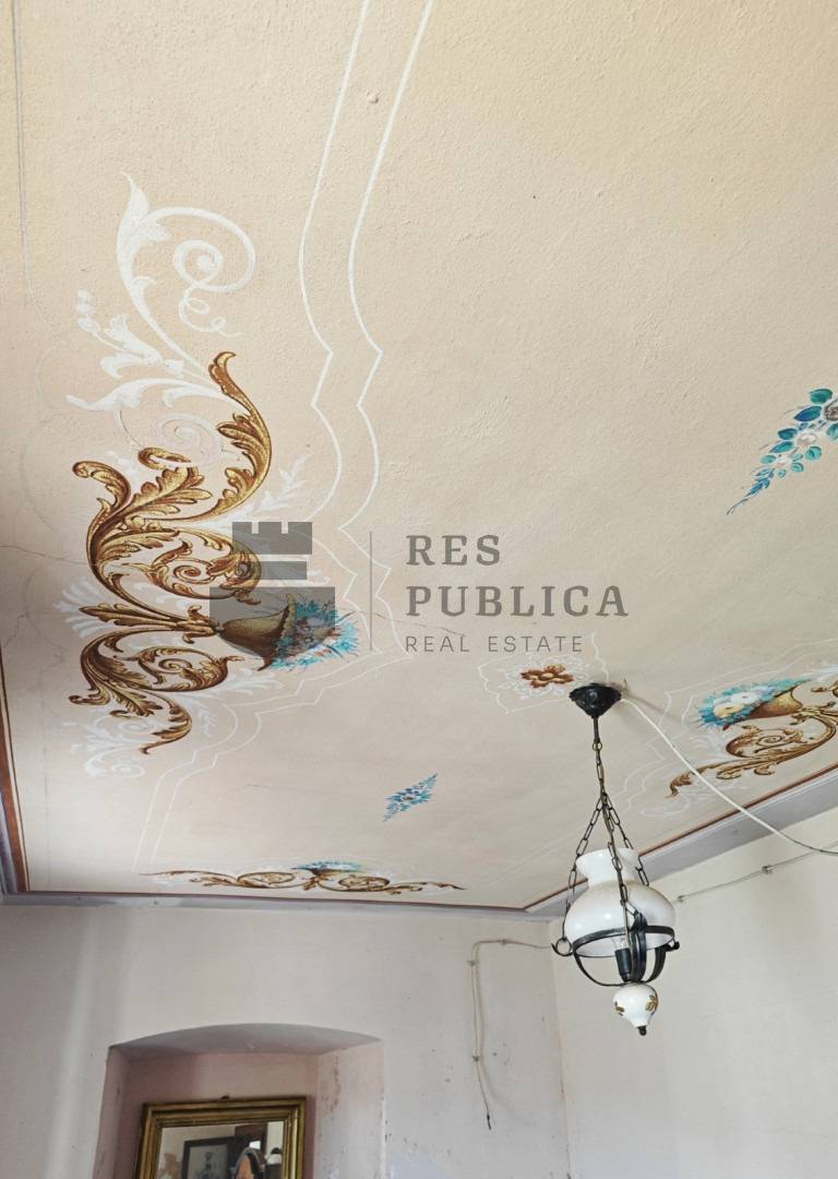 Kuća, građena u drugoj polovici 19. stoljeća, proteže se na prizemlje, prvi kat i tavan. Sačuvani izvorni elementi – kamena mlinica za masline u prizemlju, dva velika kamena pila u kojima se nekada čuvalo maslinovo ulje te stropovi s dekorativnim oslikavanjem – svjedoče o bogatoj prošlosti i posebnom karakteru ove nekretnine. Tlocrtna površina po etaži iznosi približno 187 m².