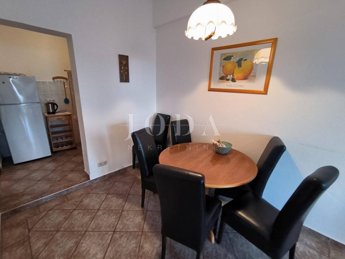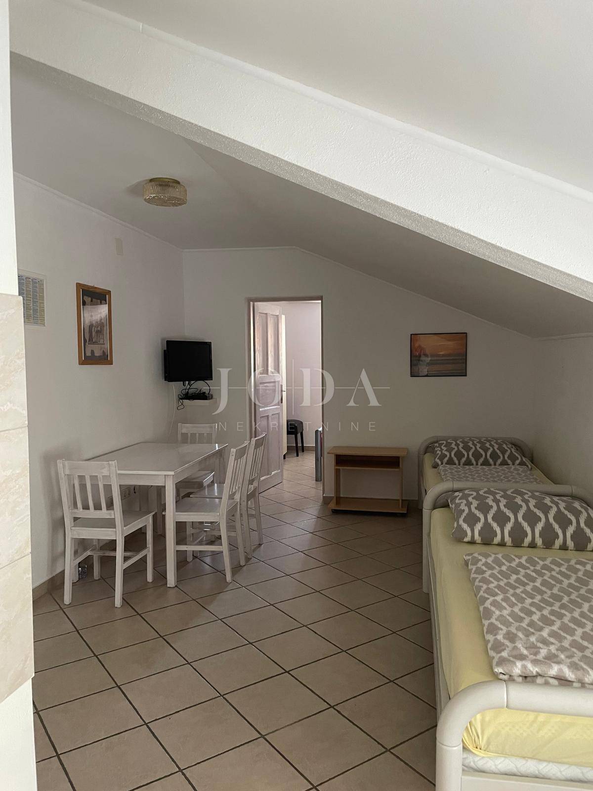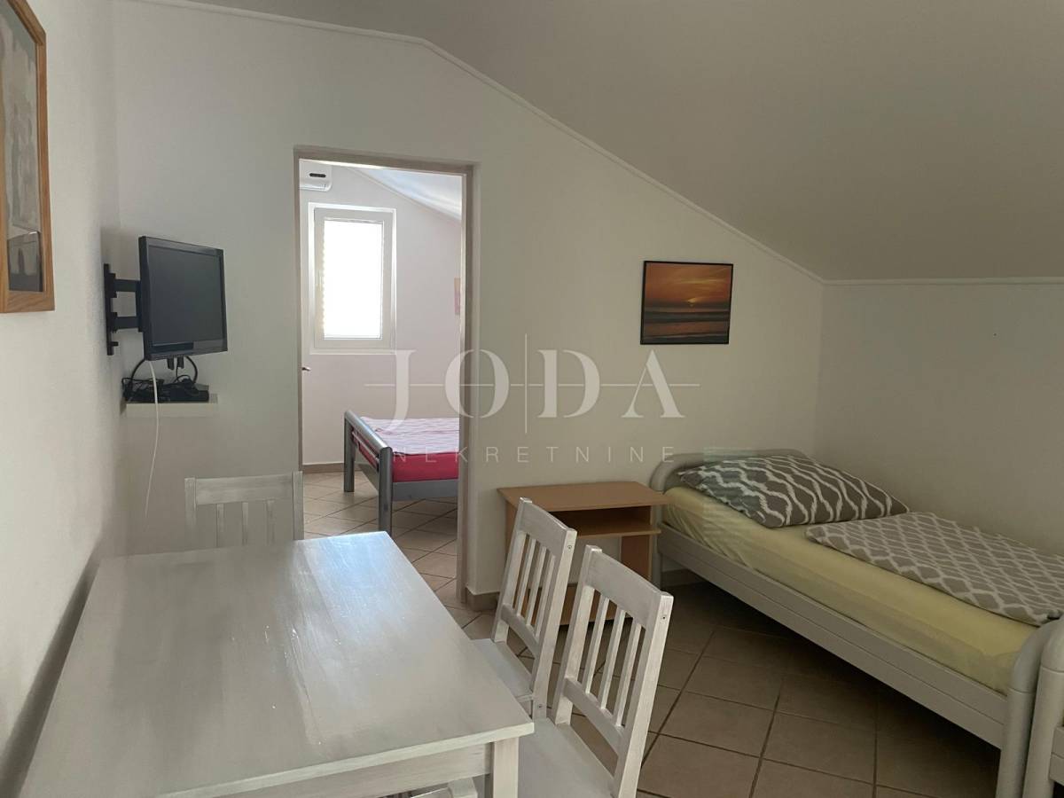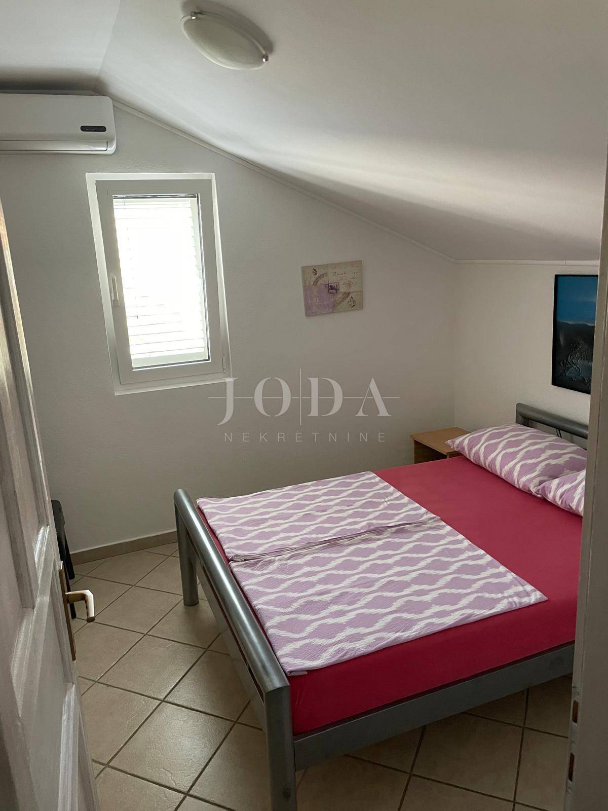 Kuća je u turističkom najmu, prodaje se namještena i opremljena. Parking je osiguran na parceli kuće koji je dovoljan za parkiranje 6 automobila. Ispred kuće na javnoj površini je moguće parkirati dodatnih 10ak vozila. Svi apartmani su opremljeni klima uređajem, a apartman na prvom katu ima grijanje na pelete. Kuća je spojena na gradsku kanalizaciju, vodovodnu mrežu i struju. Nisu potrebna dodatna ulaganja, okućnica je uređena. Plaže na svega 50m udaljenosti.