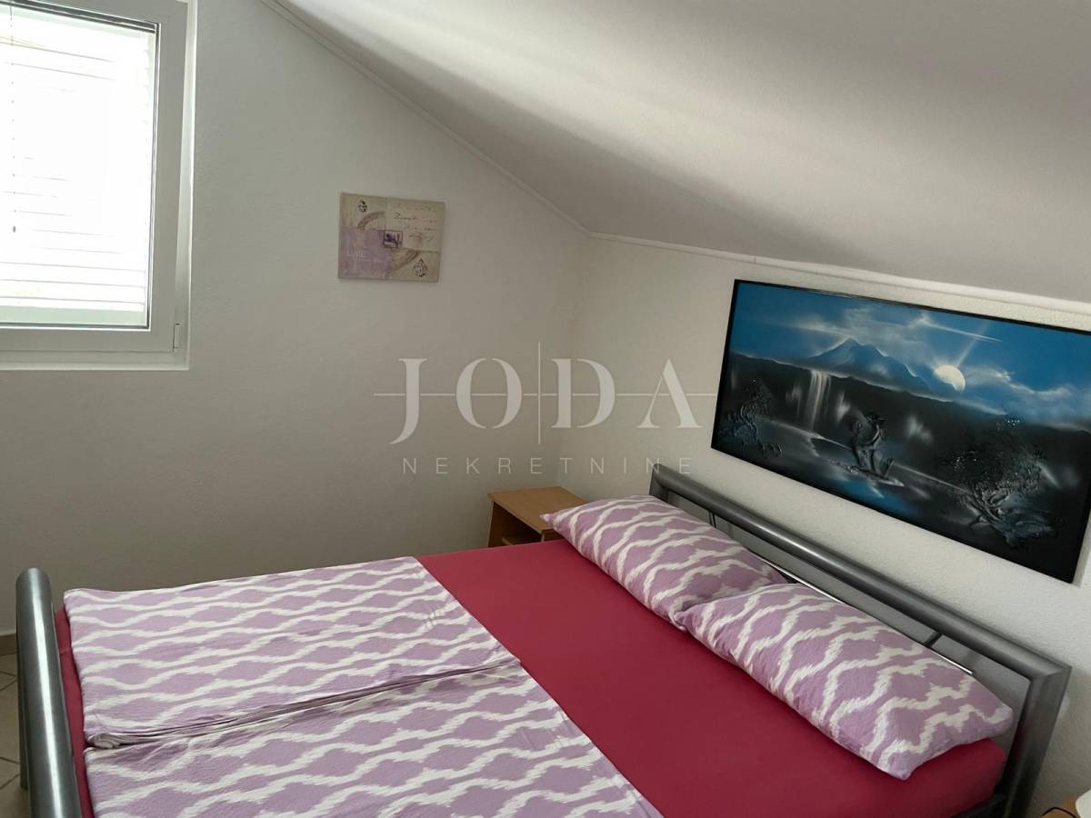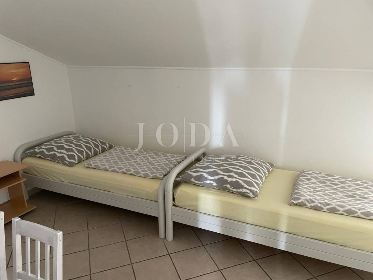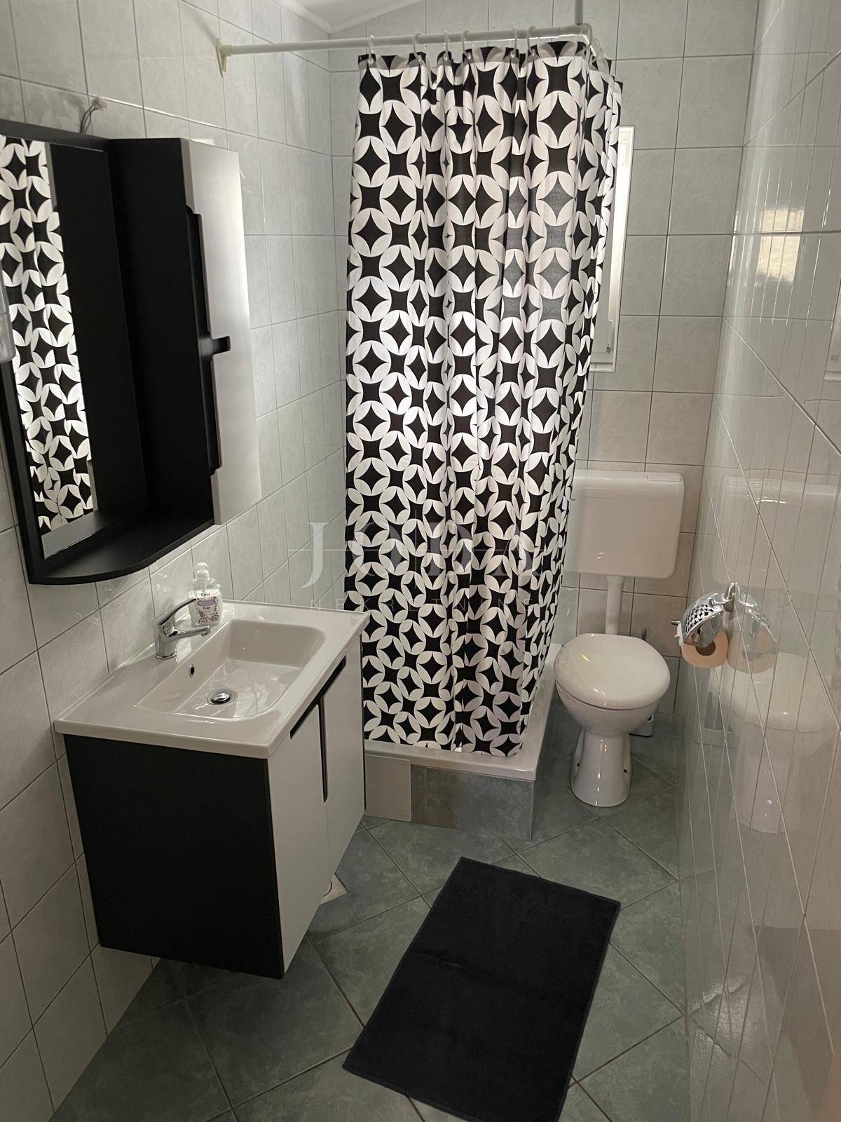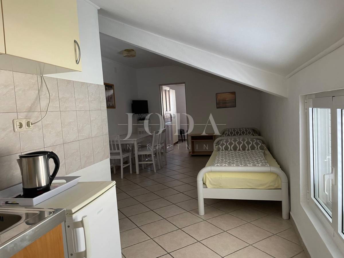 Kuća je u turističkom najmu, prodaje se namještena i opremljena. Parking je osiguran na parceli kuće koji je dovoljan za parkiranje 6 automobila. Ispred kuće na javnoj površini je moguće parkirati dodatnih 10ak vozila. Svi apartmani su opremljeni klima uređajem, a apartman na prvom katu ima grijanje na pelete. Kuća je spojena na gradsku kanalizaciju, vodovodnu mrežu i struju. Nisu potrebna dodatna ulaganja, okućnica je uređena. Plaže na svega 50m udaljenosti.