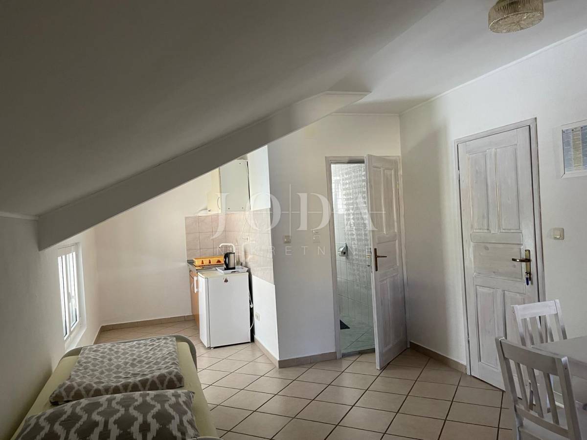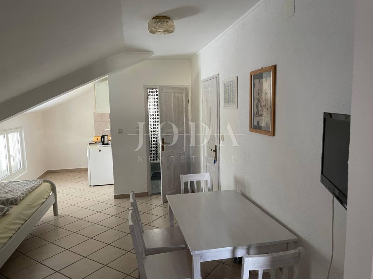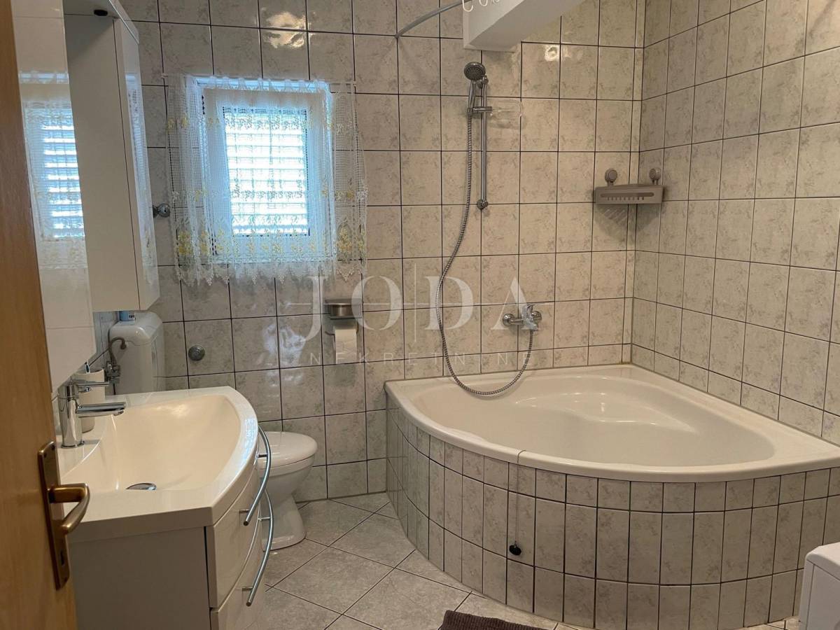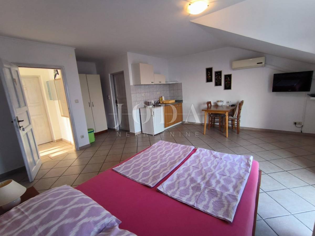 Kuća je u turističkom najmu, prodaje se namještena i opremljena. Parking je osiguran na parceli kuće koji je dovoljan za parkiranje 6 automobila. Ispred kuće na javnoj površini je moguće parkirati dodatnih 10ak vozila. Svi apartmani su opremljeni klima uređajem, a apartman na prvom katu ima grijanje na pelete. Kuća je spojena na gradsku kanalizaciju, vodovodnu mrežu i struju. Nisu potrebna dodatna ulaganja, okućnica je uređena. Plaže na svega 50m udaljenosti.