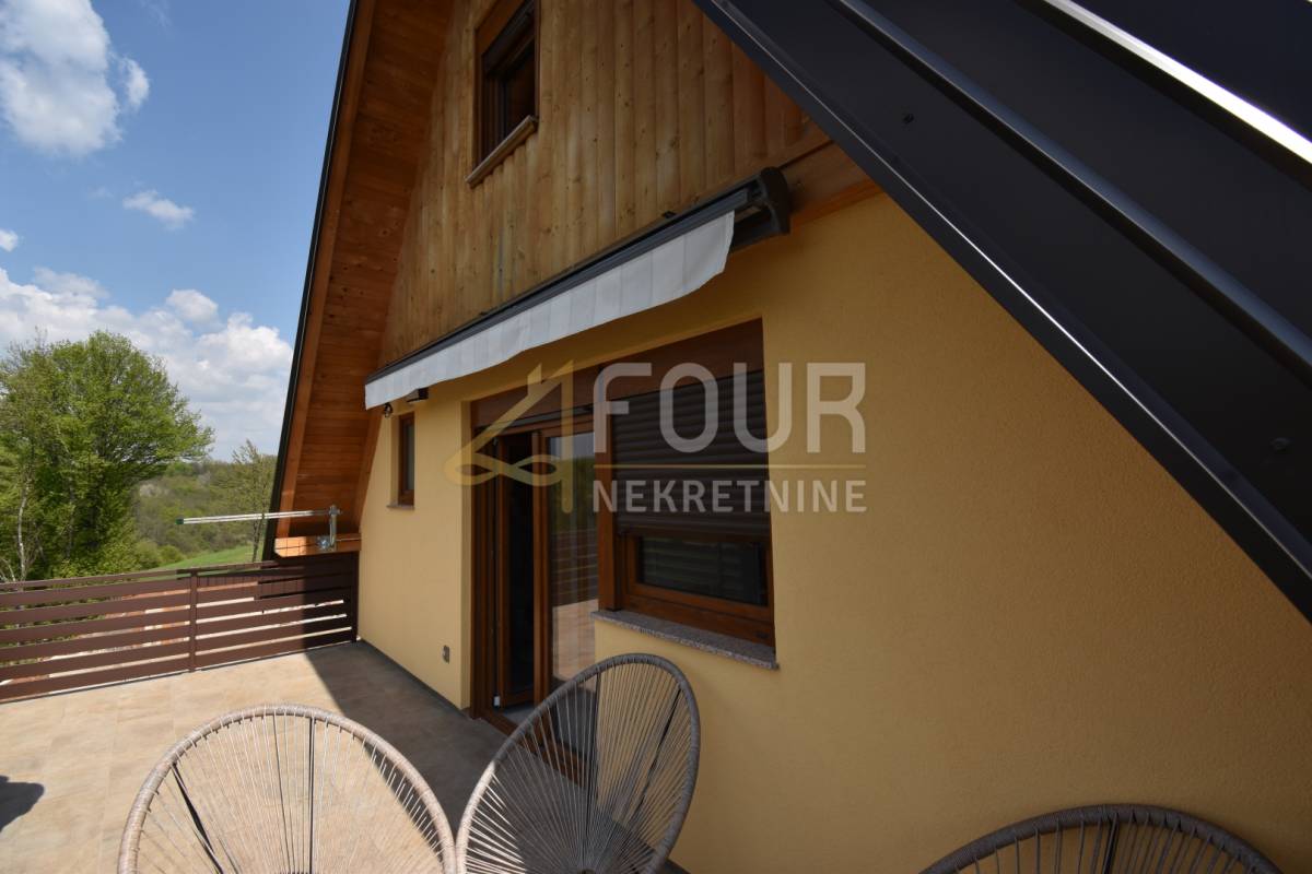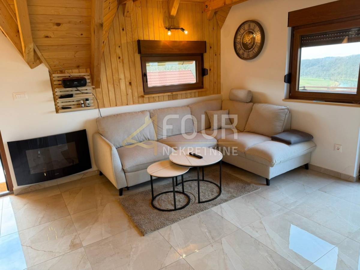 U Karlovačkoj županiji, u mirnom i prirodom okruženom području nadomak rijeke Korane, prodaje se samostojeća kuća novije gradnje ukupne površine 114 m2, smještena na parceli od 554 m2 s prostranom okućnicom od 464 m2.