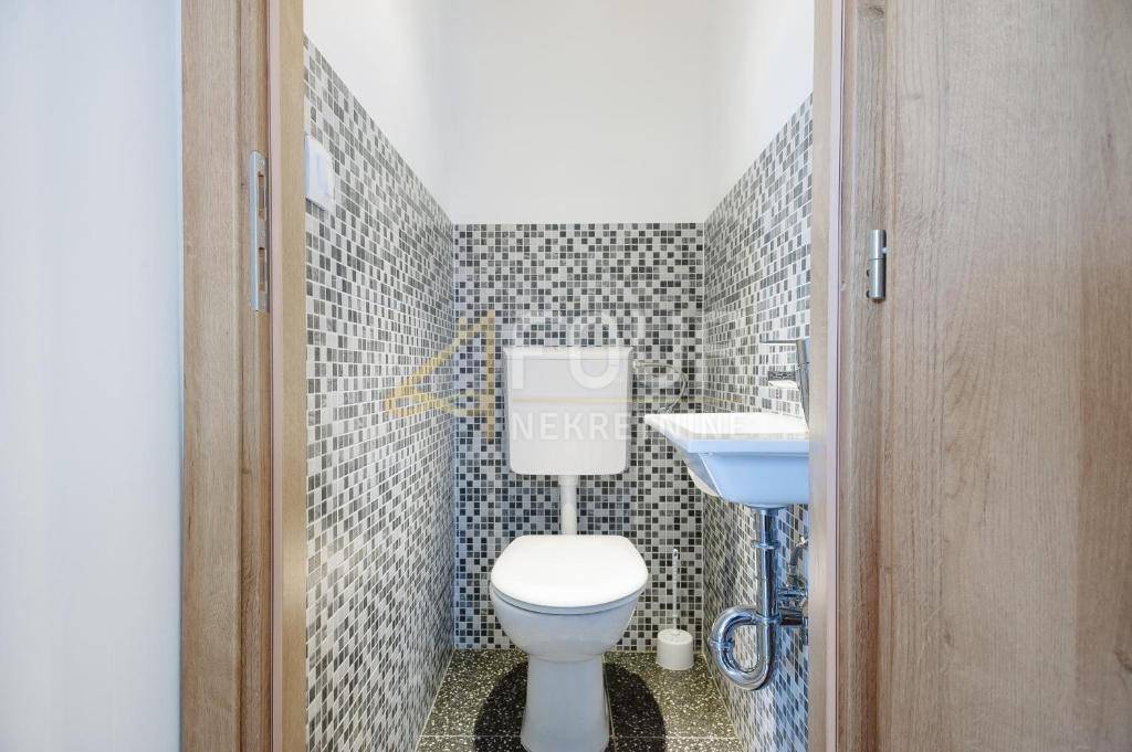 Prizemlje obuhvaća dnevni boravak, kuhinju, spavaću sobu, kupaonicu, dodatni WC i stepenice koje vode u potkrovlje.
