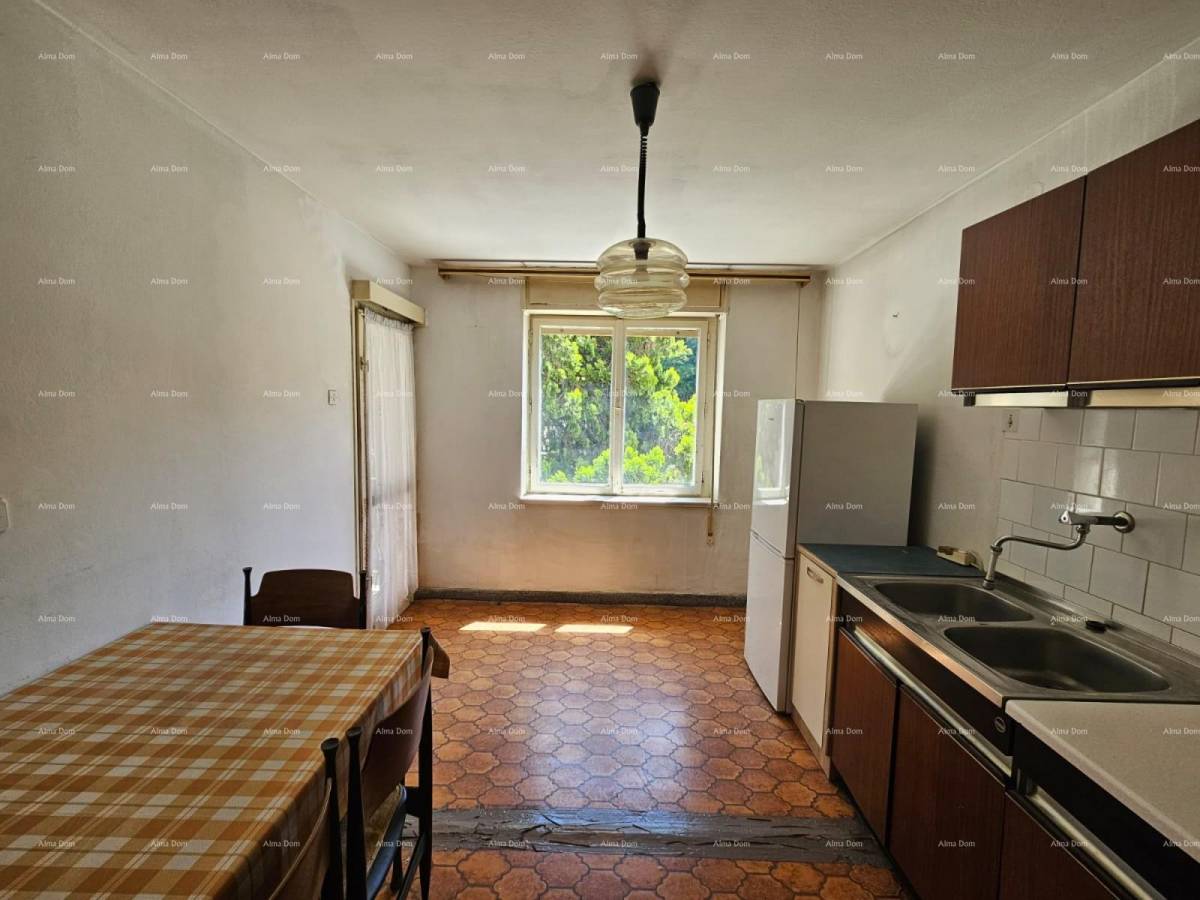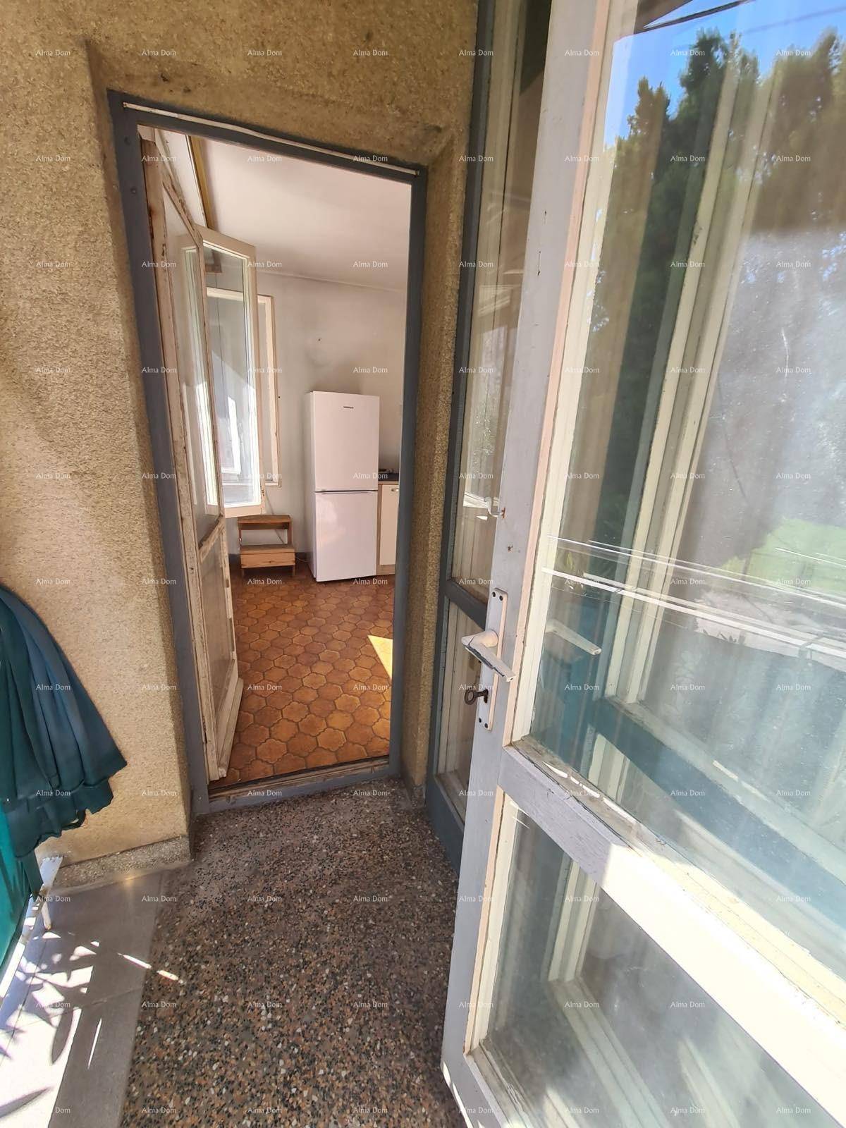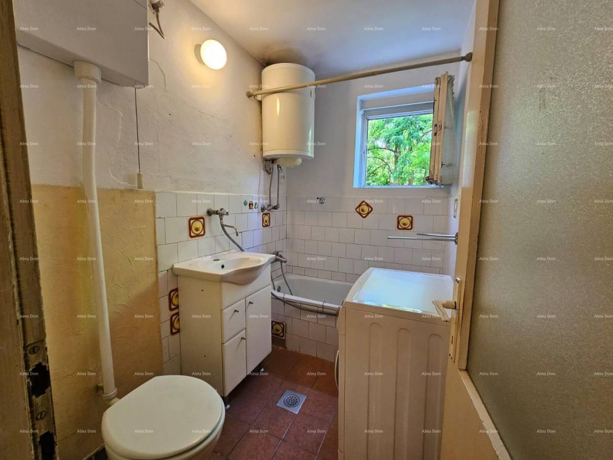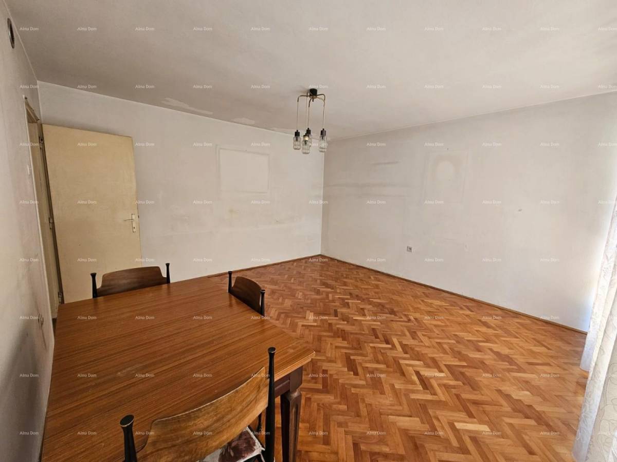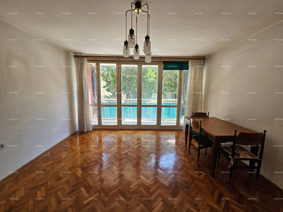 Na prodaju je stan s dvije spavaće sobe, površine 59 m², smješten u visokom prizemlju uredne stambene zgrade u mirnoj i traženoj ulici u širem centru Pule.