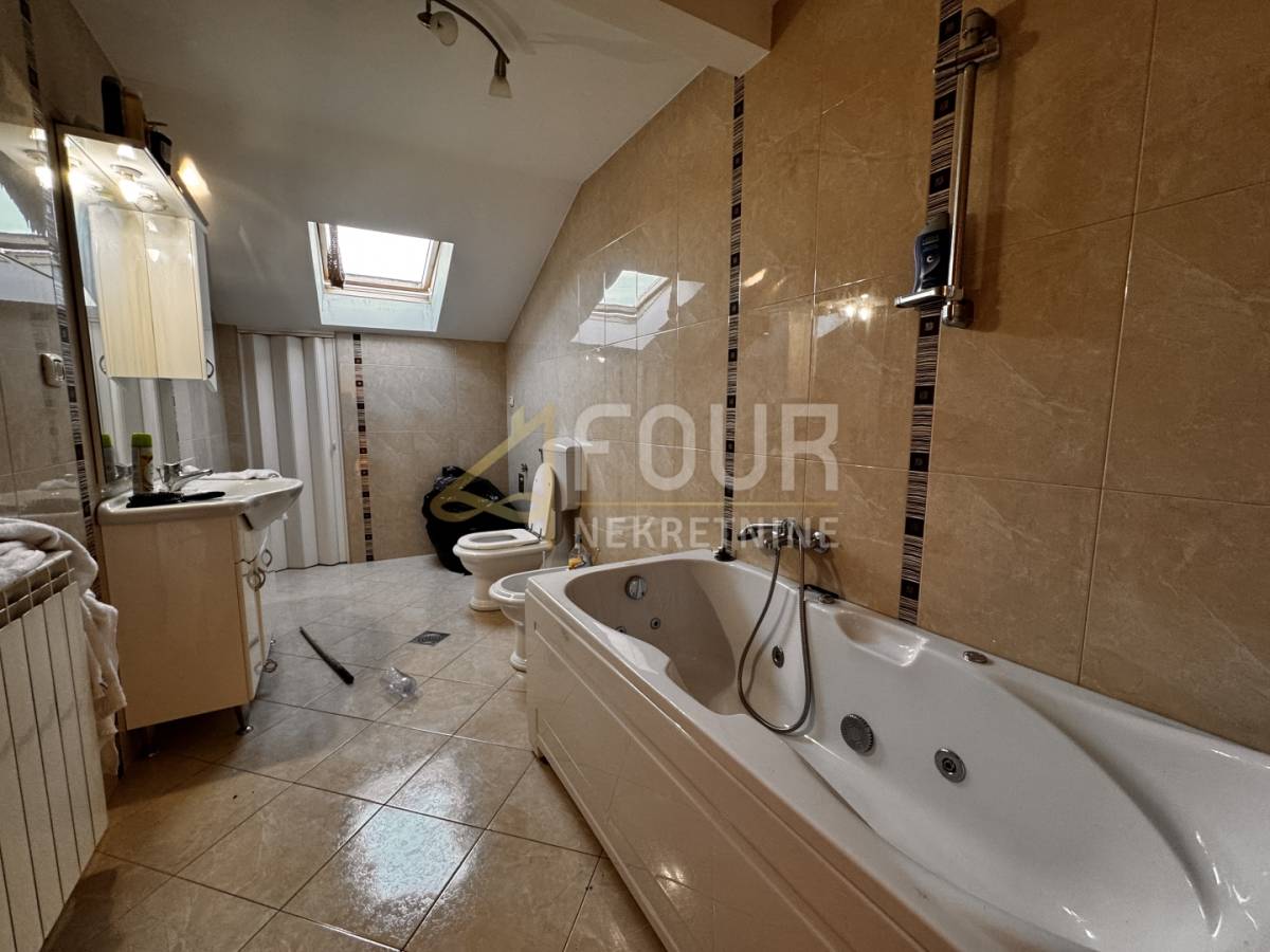 Na katu, koji je dograđen 2014. godine, nalazi se kompletno uređeni stan s galerijom. Sastoji se od natkrivene ulazne terase, hodnika, spavaće sobe, kupaonice, kuhinje s blagovaonicom, spremišta te dnevnog boravka s izlazom na natkrivenu terasu s koje se pruža otvoren pogled na more. Na galeriji su smještene još dvije spavaće sobe s garderobom, dodatna kupaonica i balkon, čime je prostor funkcionalan i idealan za obiteljski život.