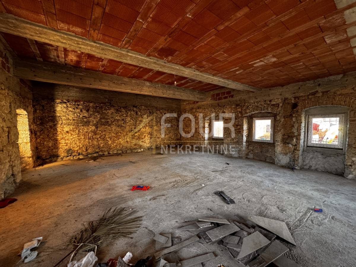 U ponudi je dvojna kuća smještena u mirnom dijelu Kastva, s lijepim pogledom na more i velikim potencijalom za uređenje prema vlastitim željama. Nekretnina ukupne površine oko 300 m2 sastoji se od suterena, prizemlja i kata, pri čemu su suteren i prizemlje građeni od kamena i u roh-bau fazi.