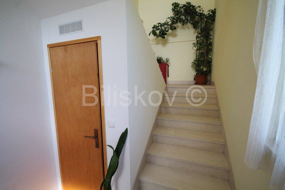 Stan je kompletno opremljen i namješten. Sastoji se od kuhinje s blagovaonicom i dnevnim boravkom, spavaće sobe s vlastitom kupaonicom, 2 velike spavaće sobe, kupaonice, lođe te male ostave (ispod skala)