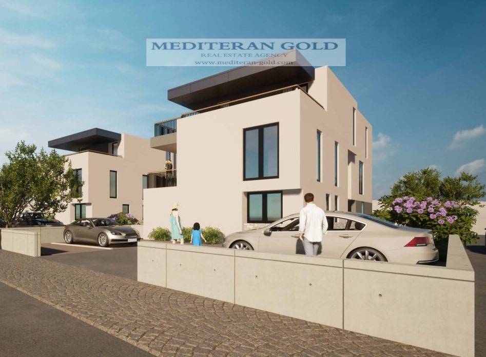 U prodaji moderna novogradnja vrhunske kvalitete i opreme, pogodna za obiteljski život ili investiciju, na atraktivnoj lokaciji u Kaštel Novom, Rudine. Smještena u mirnoj ulici u blizini svih ključnih sadržaja, projektirana s naglaskom na kvalitetu, udobnost i suvremeni stil života. Projekt se sastoji od manjih stambenih zgrada, svaka s po dva kata, što osigurava visoku razinu privatnosti i komfora stanovanja. Luksuzan standard gradnje i moderna arhitektura, mirna lokacija, odlična prometna povezanost. Svaka zgrada obuhvaća četiri funkcionalno raspoređena stana. Svi stanovi imaju pogled na more. Stanovi su dizajnirani s naglaskom na funkcionalnost, suvremen stil i maksimalno iskorištenje prirodnog svjetla i nude najviši standard opreme: aluminijska stolarija s troslojnim staklom, električne rolete, podno grijanje, inverter klima uređaji, luksuzne keramičke pločice i opremu provjerenih brendova.Ovaj projekt donosi spoj elegancije, udobnosti i dugotrajne kvalitete. Predviđeno useljenje 12//2027.godine. U cijeni je parkirno mjesto.