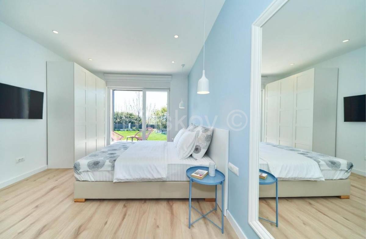 U ugodnih 180 m2 prizemlja ove vile, smjestile su se 4 spavaonice sa bračnim krevetima i klima uređajima te 4 pripadajuće kupaonice.