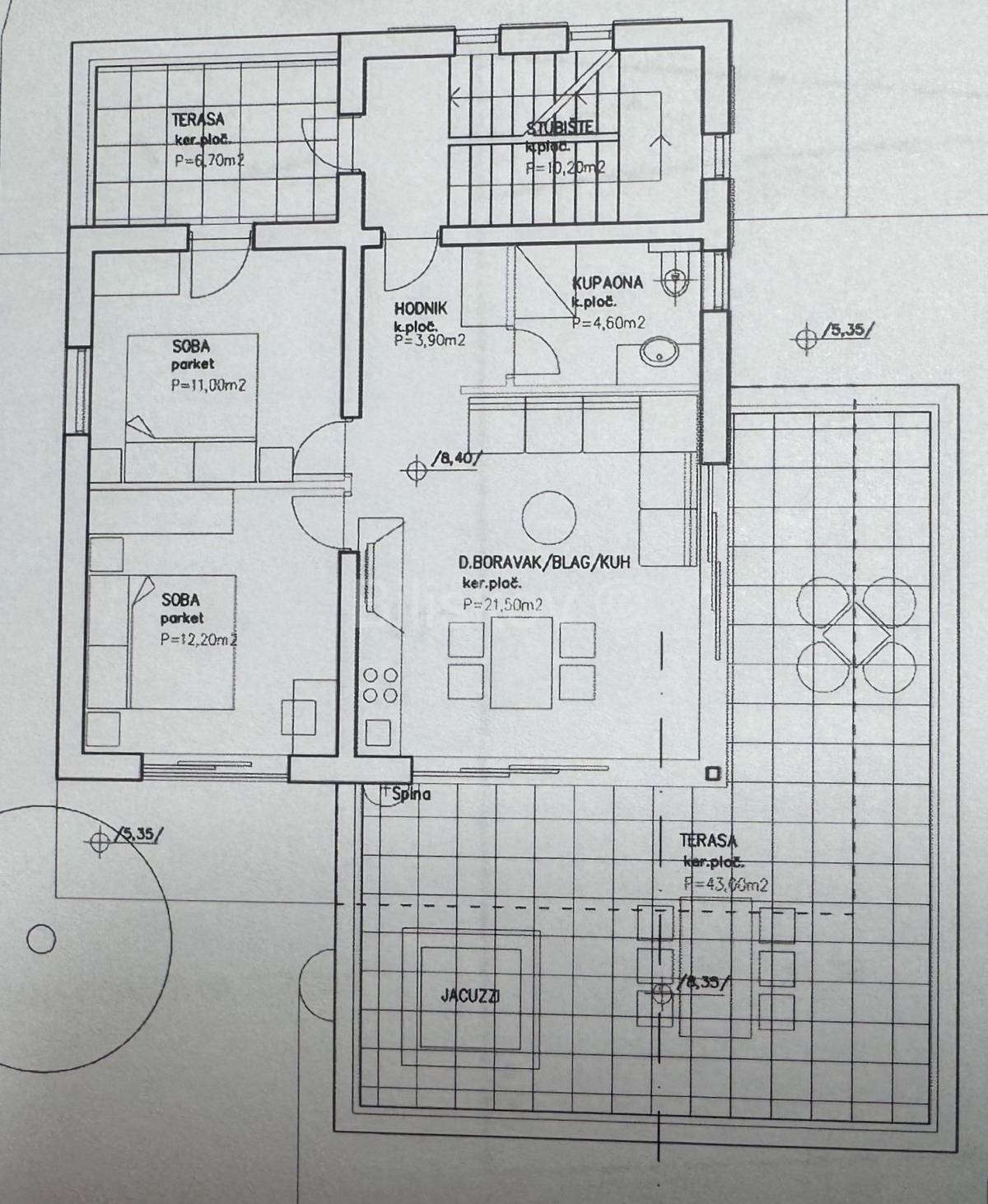 Prizemlje: dvosoban stan sa terasama