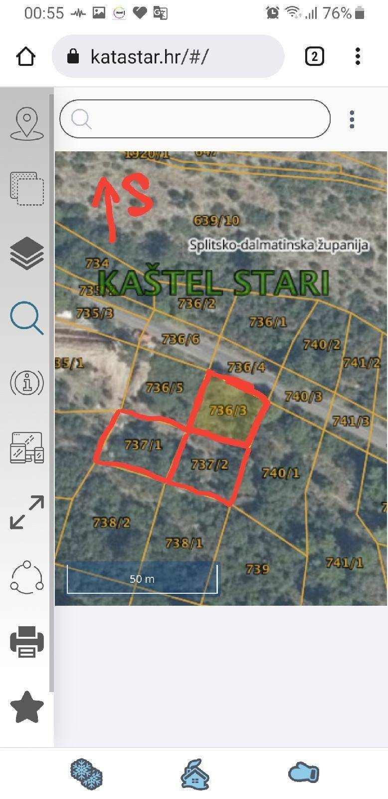 Kaštel Stari, Radun ulica (asfalt) - ulaz na zemlju s Radun ulice i ispod zemlje makadam put, brdo Malačka, zemljište . . . . . . . . . lijep pogled na grad Split, Trogir i otoke Brač i Šoltu, u blizini borova šuma i izvor prirodne vode, vlasništvo 1/1, bez tereta. . . . . . uz zemlju glavna cesta za autoput . . . . . . . . . . . . . na tom djelu već ima izgrađenih kuća koje nisu u građevinskoj zoni. . . . . .