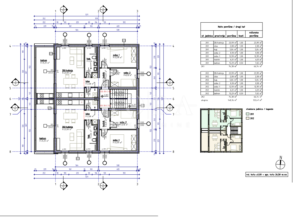 Stambena površina 66,74 m²