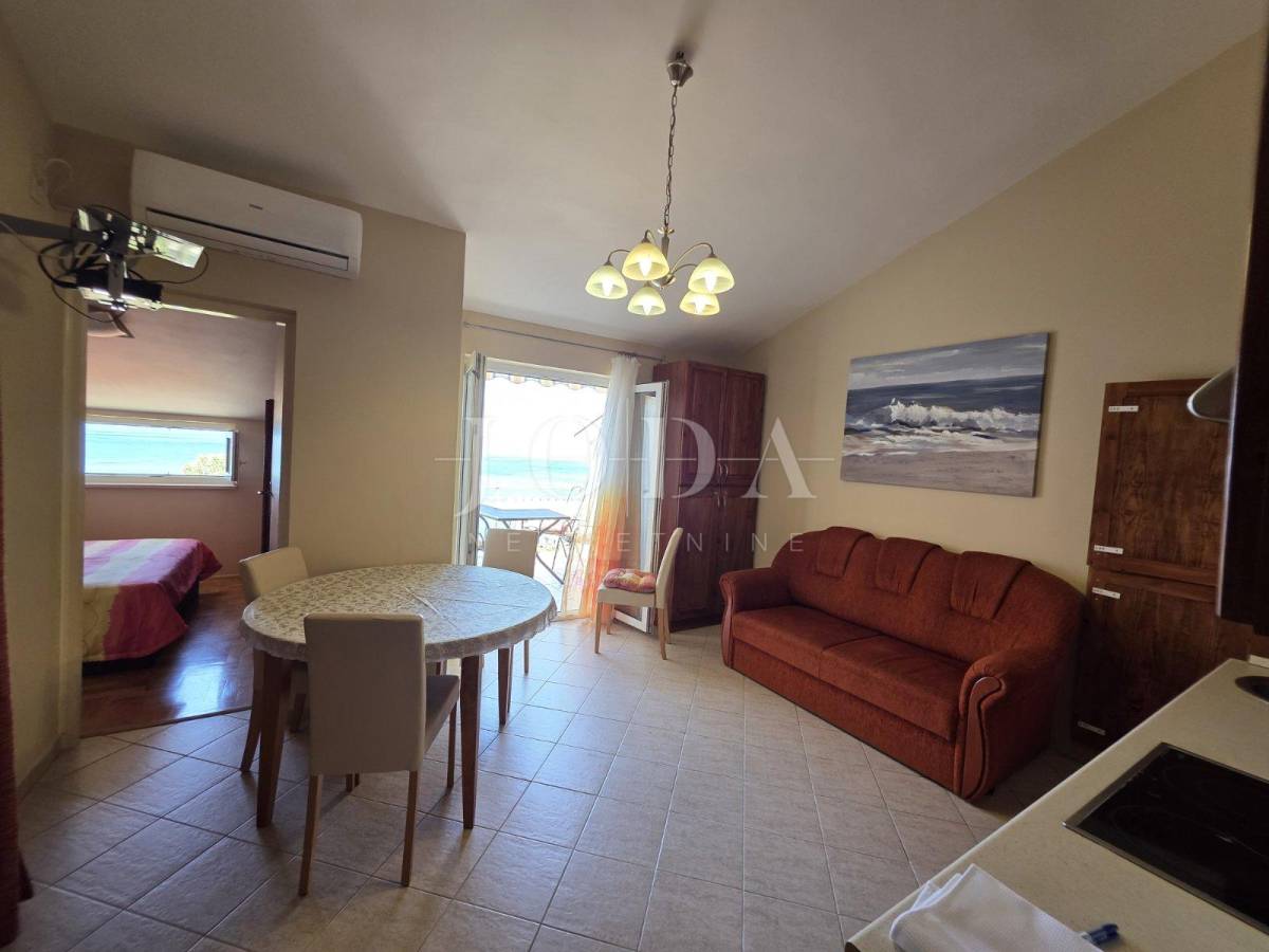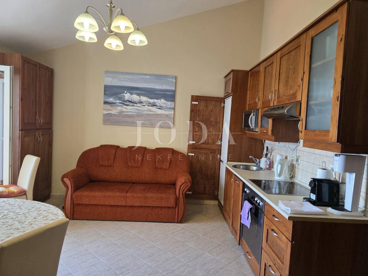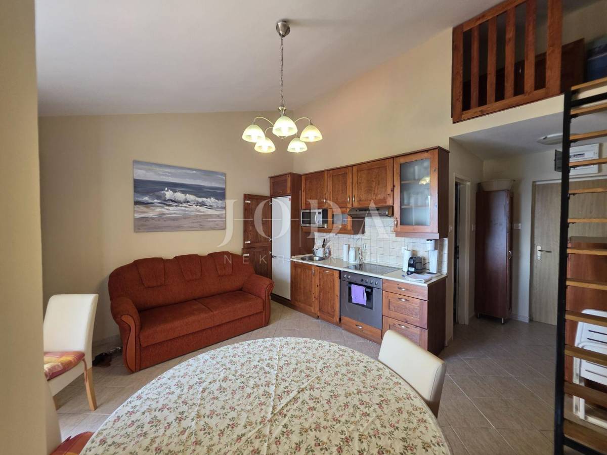 Prodajem stan sa galerijom na samo 70m od mora sa prekrasnim pogledom. Stan je površine 43.05 m2 i sastoji se od ulaznog hodnika, ,kuhinje sa blagovaonom, dnevnog boravka, spavaće sobe, galerije s dodatnim spavaćim prostorom i terase. Nekretnina se prodaje potpuno namještena i klimatizirana spremna na korištenje. Parking unutar okućnice zgrade. Izvrsna lokacija blizu svih potrebnih sadržaja.