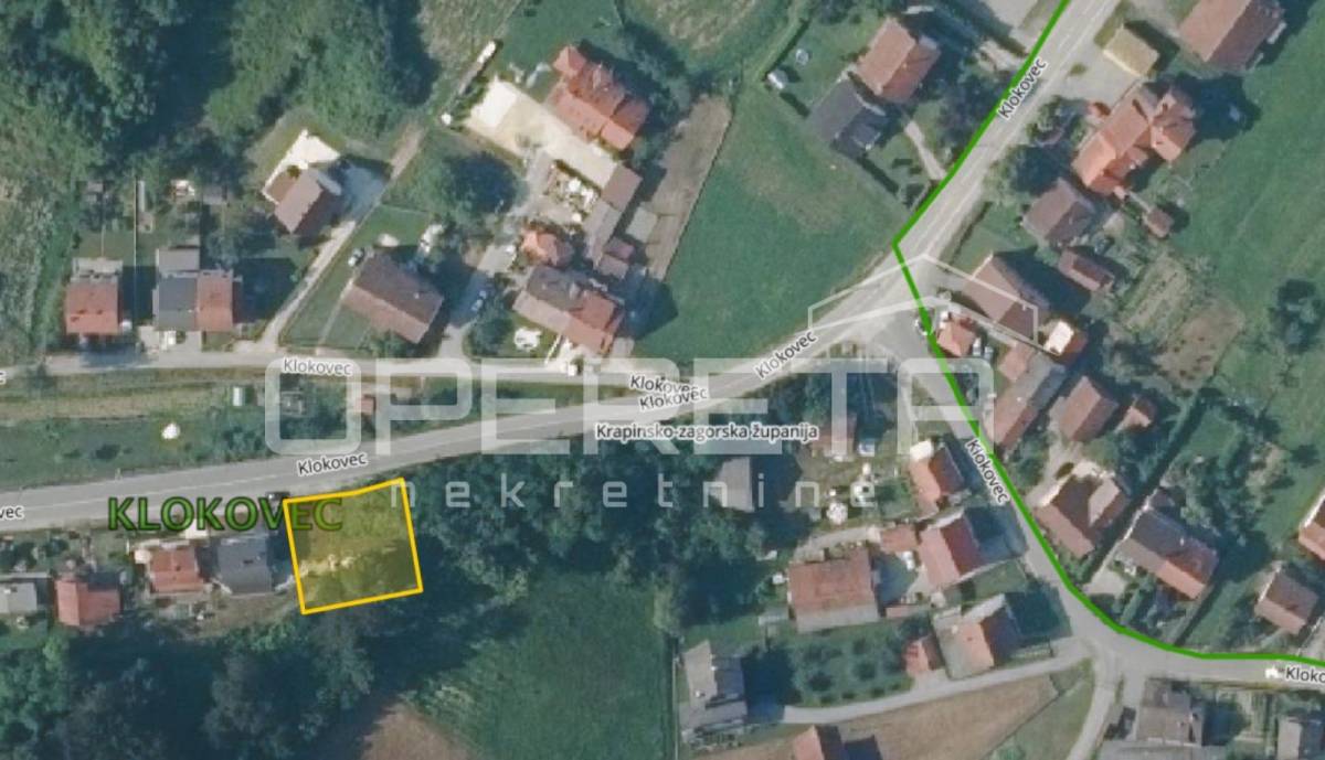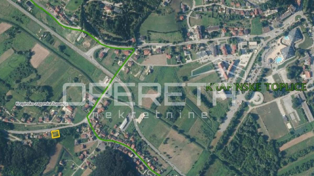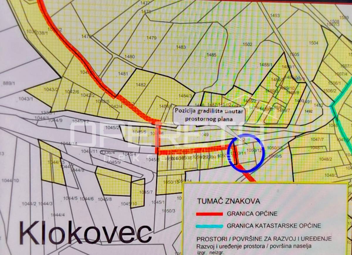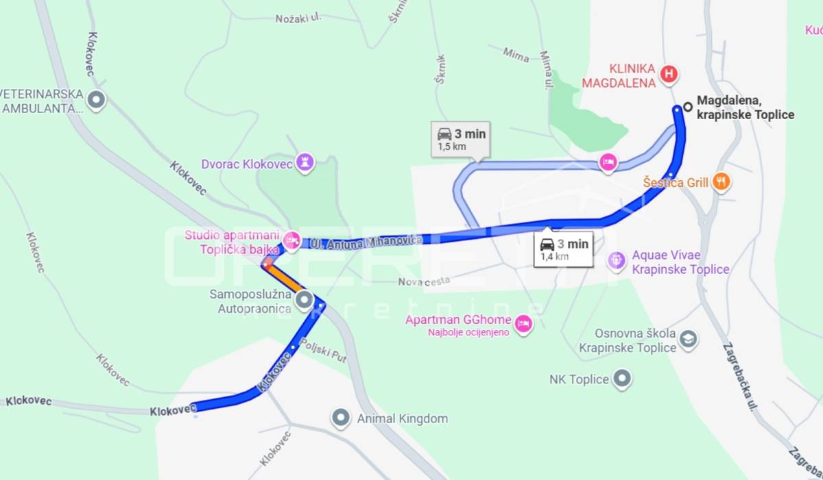 Zemljište pravilnog pravokutnog oblika s nagibom, uz glavnu cestu Klokovec, od centra Krapinskih Toplica i termi Aqua Vivae udaljeno svega 2 minute vožnje.