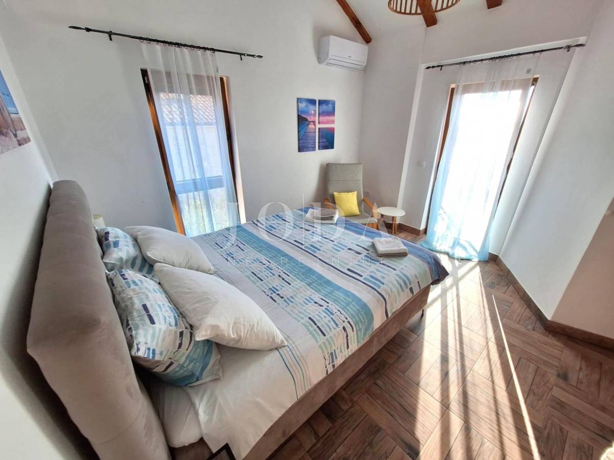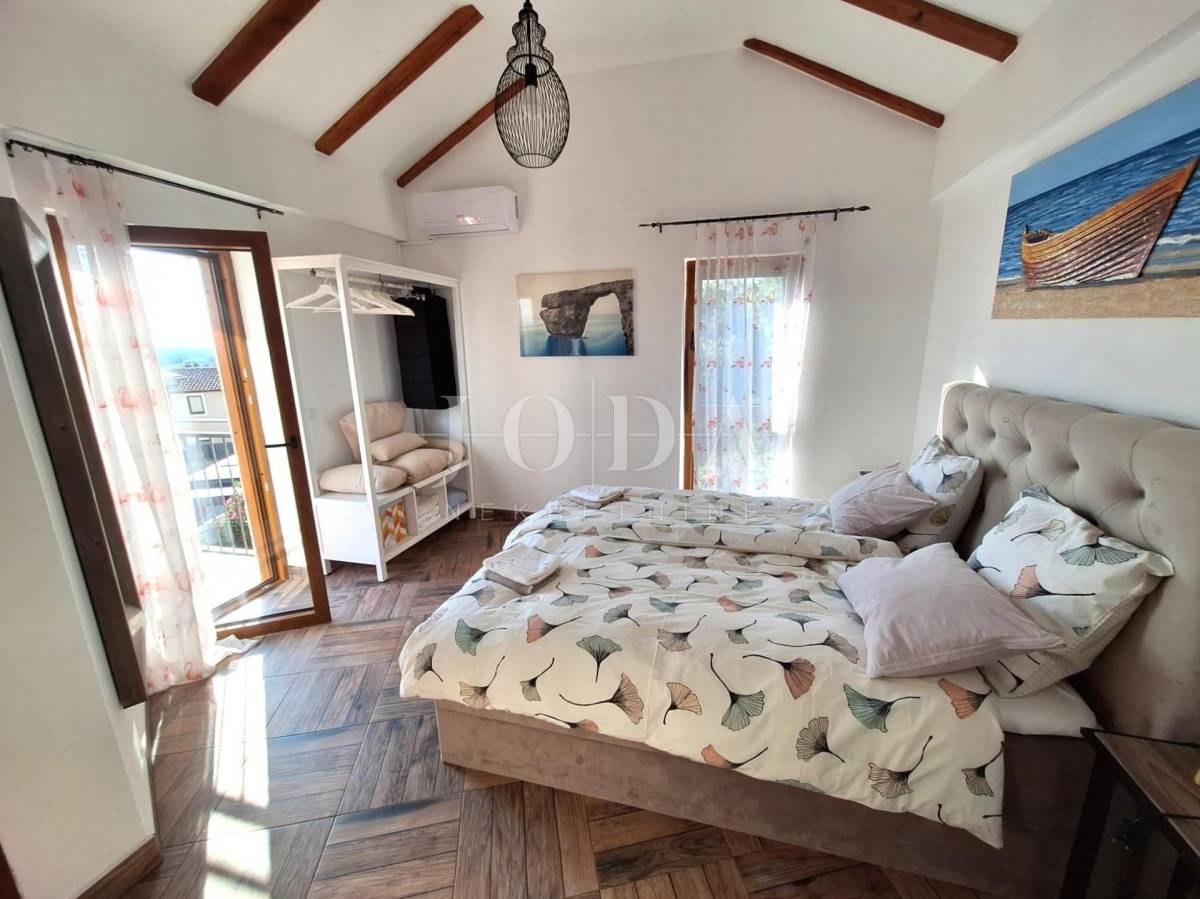 Unutarnje stepenice vode na kat s dvije spavaće sobe i dvije kupaonice. Obje sobe imaju izlaz na terasu s pogledom na prirodu i djelomičan pogled na more.