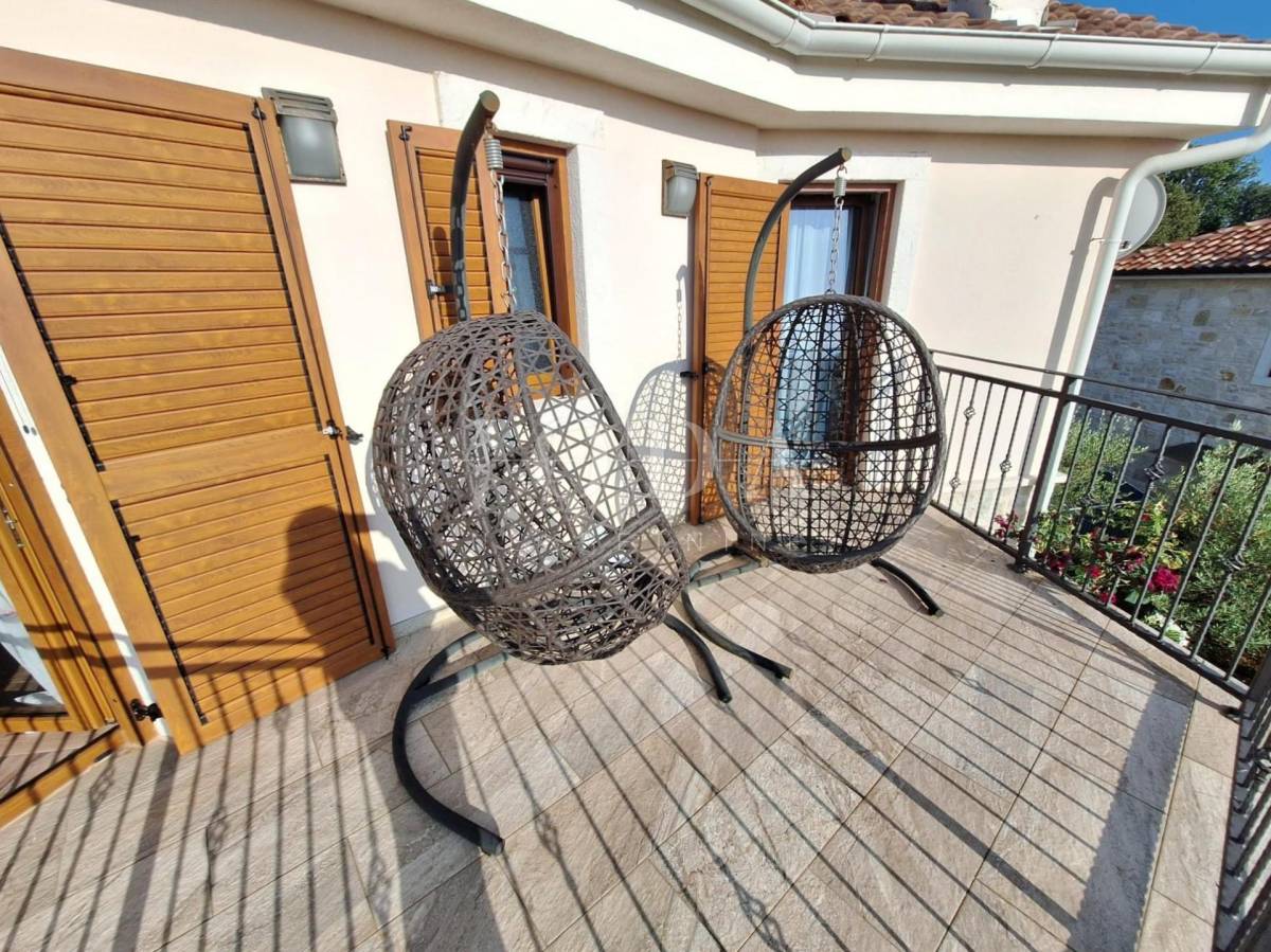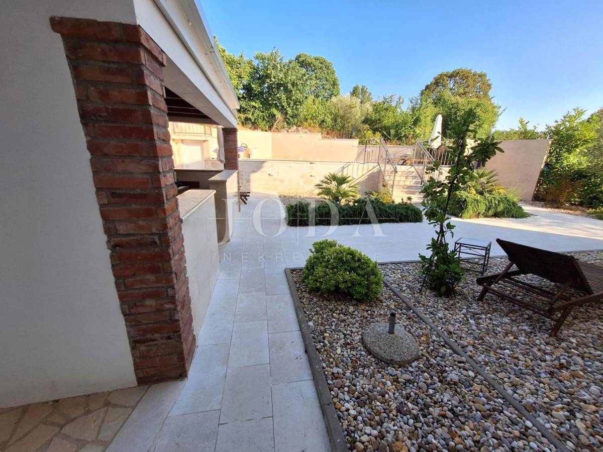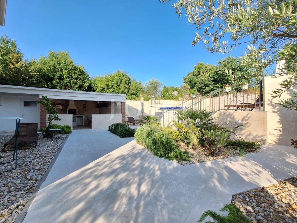 Okućnica je uređena i uključuje dva parkirna mjesta, spremište, ljetnu kuhinju s roštiljem i natkrivenom terasom, bazen i sunčalište.