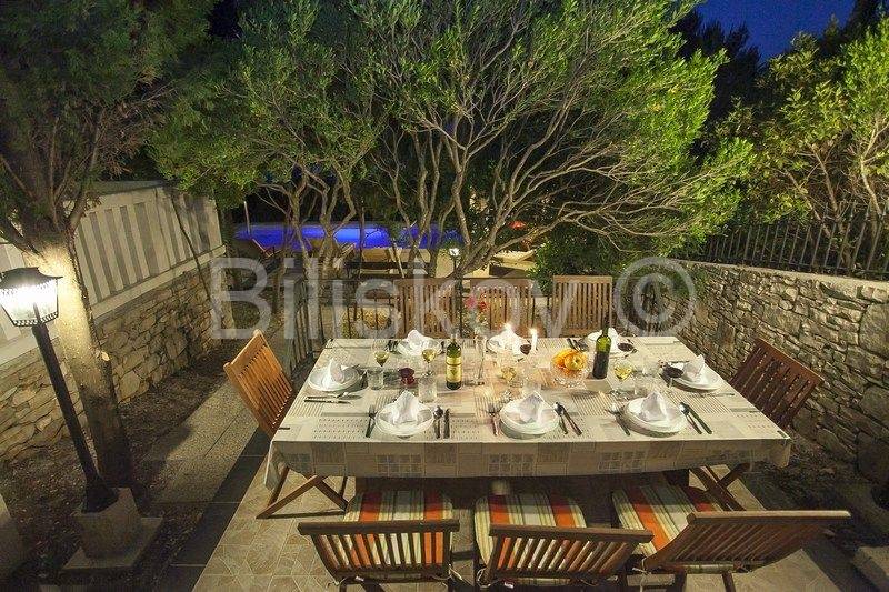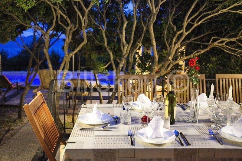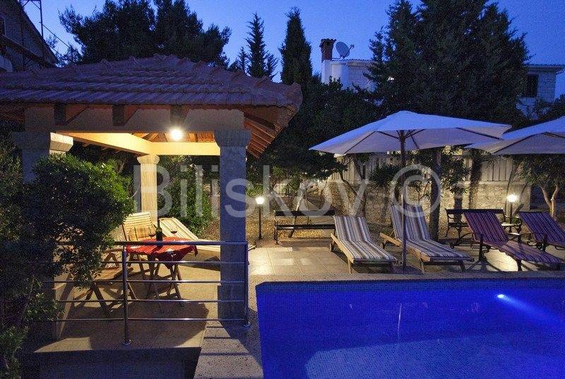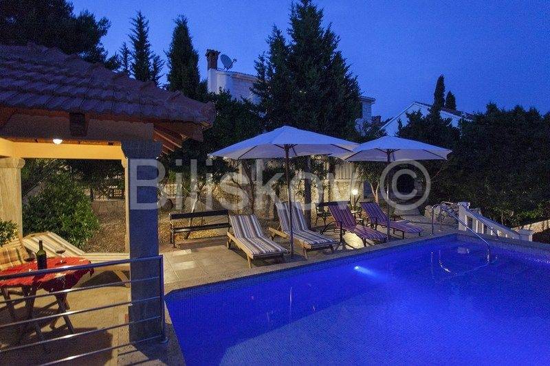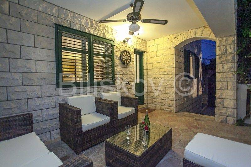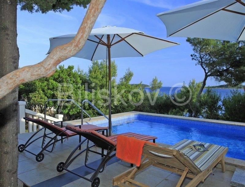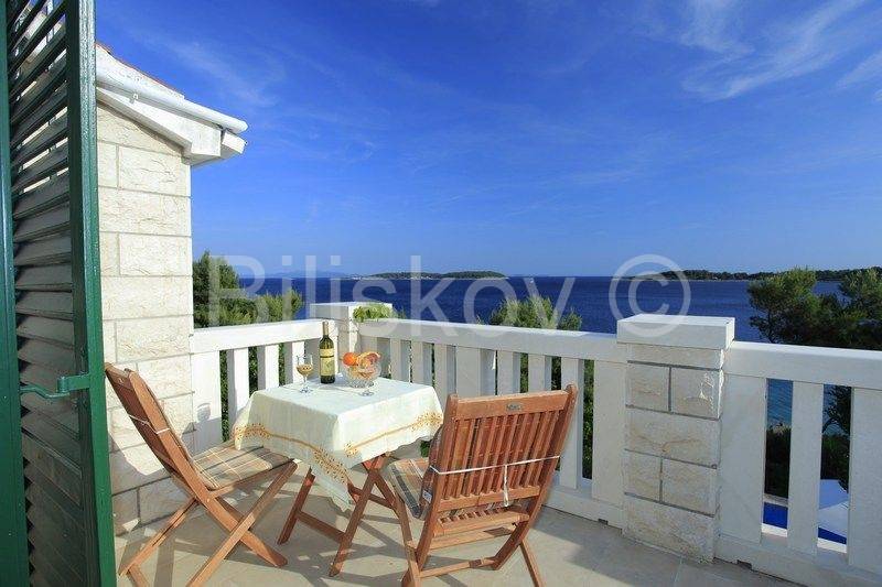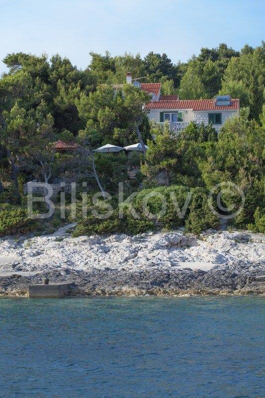 kamena kuća u prvom redu uz more s otvorenim pogledom na Lastovo. U prizemlju se nalazi kuhinja s trpezarijom i kaminom, i kupatilo, a ispred na nižoj kaskadnoj terasi se nalazi bazen. Na 1.katu je dvosoban stan s terasom, i iza kuće su dva parkirna mjesta. Okućnica je kultivirana autohtonim biljem, a cijela okućnica je koncipirana da pruža intimu, sa više mjesta za sjedenje i uživanje i prekrasnom pogledu. Ispred kuće je betonirani plato za sunčenje i vez za brod.