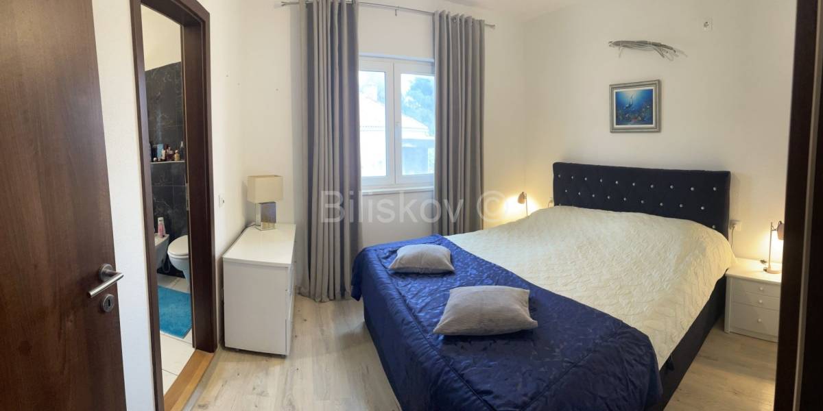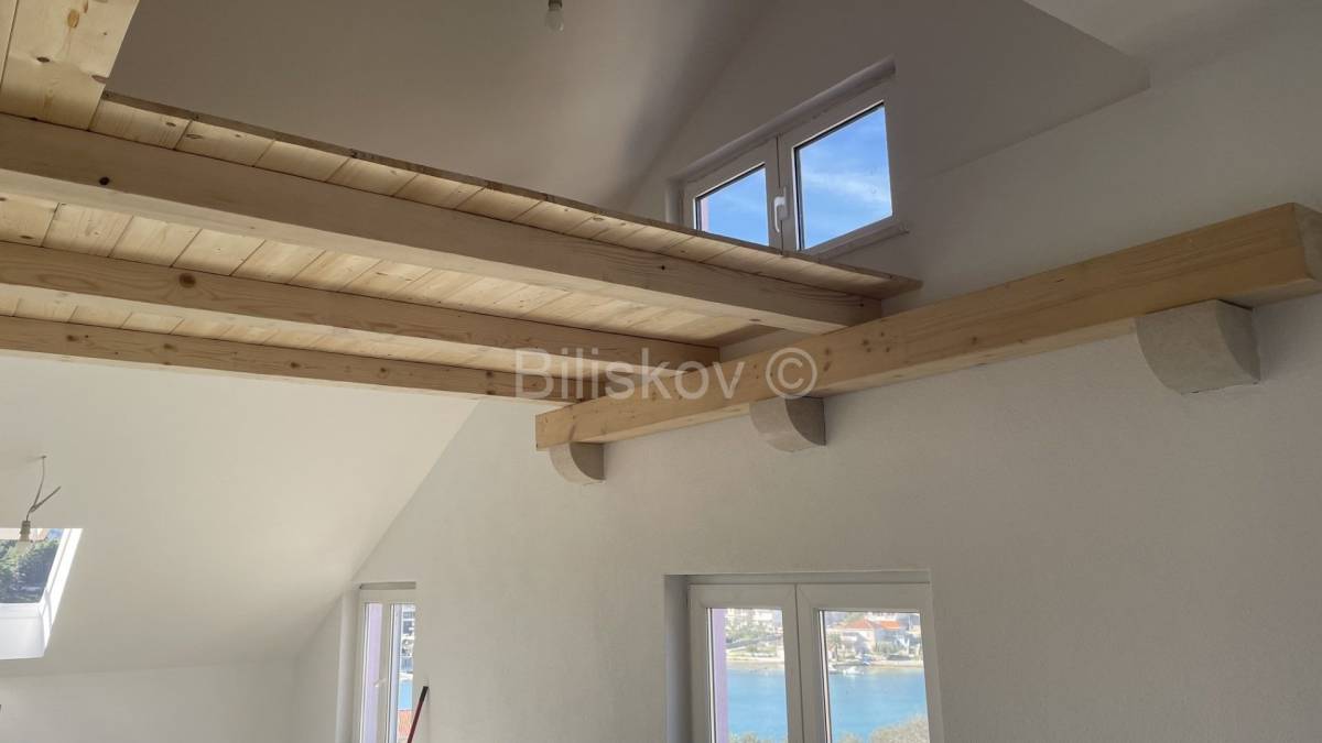 Kuća je izgrađena 2006.godine, a ovaj stan je kompletno uređen 2023. i prodaje se djelomično namješten, s namještajem na slikama. 2023. su izvedeni svi unutarnji radovi:novi zidovi, instalacije struje i vode, instalacije klima uređaja, podovi, velux prozori, drvena galerija.