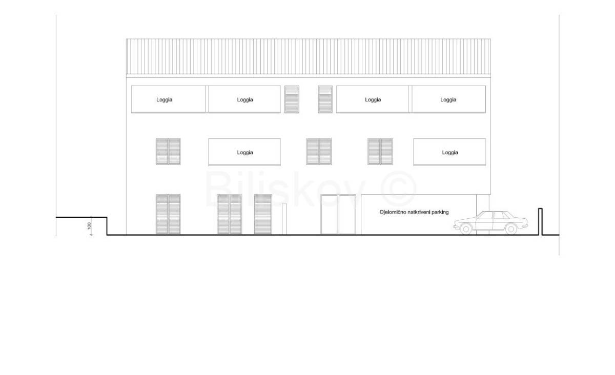 STAN 4: jednosoban stan na 2.katu tlocrtne površine 27,5m2 s lođom površine 5,25m2 i parkirnim mjestom, ukupne obračunate površine 44m2. S obzirom na visinu stropa od 4,8m2, u stanu će biti izvedena i galerija s prostorom za spavaonicu. Cijena 126.000€