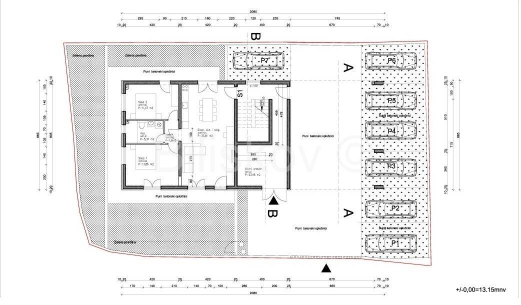 STAN 1: prizemlje s vrtom i parkingom ukupne obračunate površine 85m2 - 235.000€