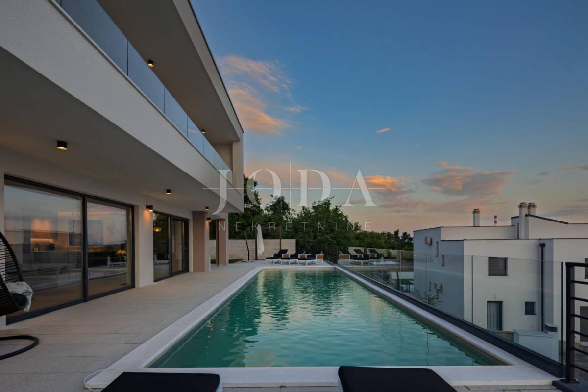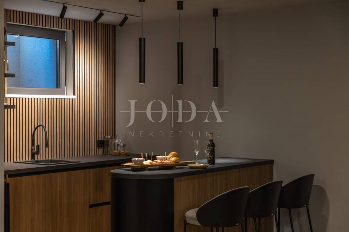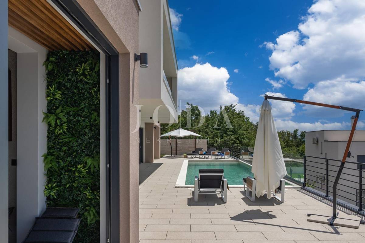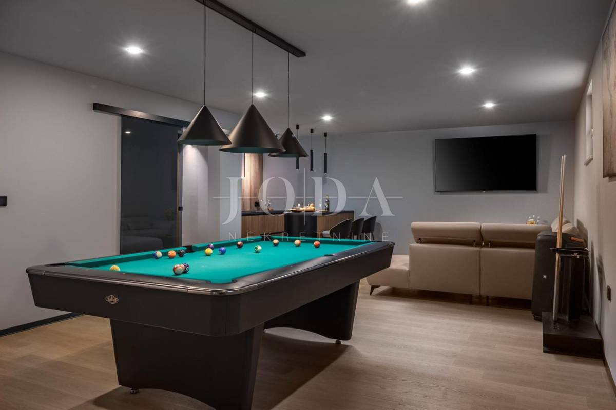 Ova moderna nekretnina prostire se na tri etaže – suteren, prizemlje i kat te nudi bogat sadržaj koji uključuje unutarnji i vanjski bazen, wellness zonu, saunu, teretanu i prostore za druženje i opuštanje.