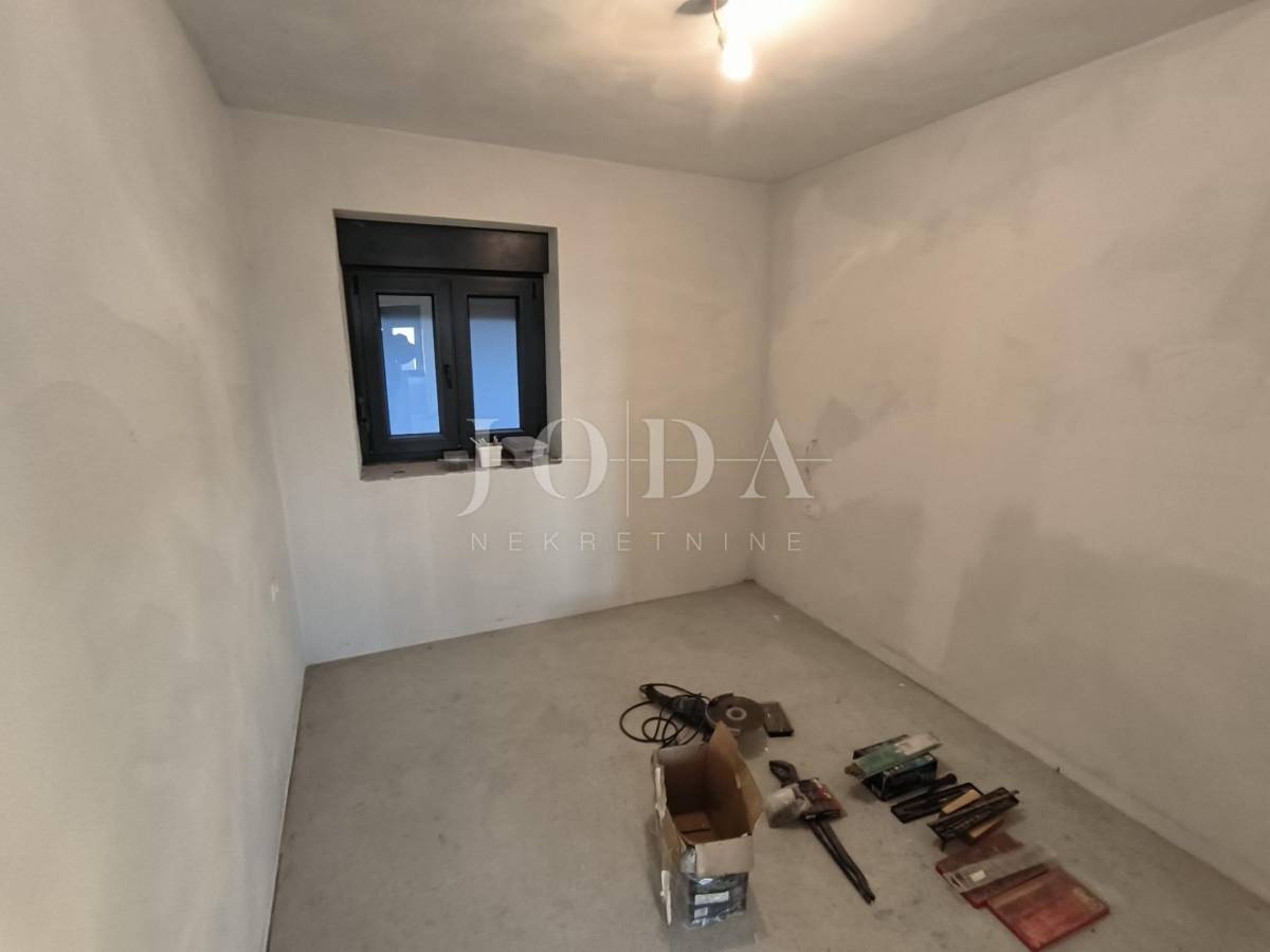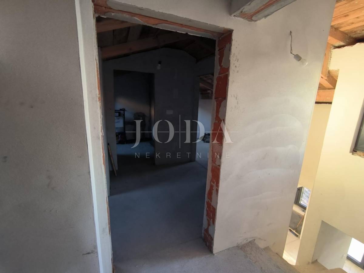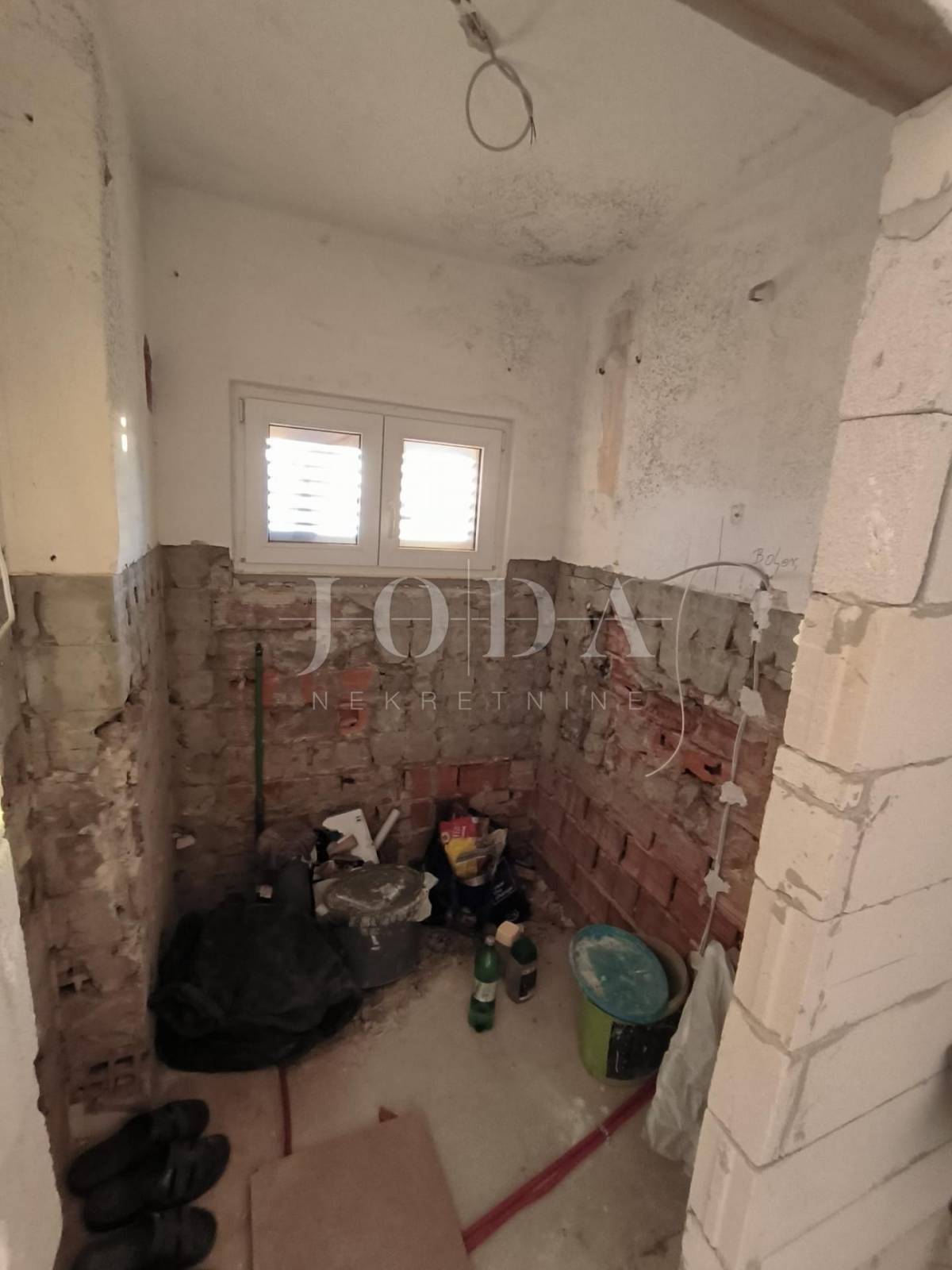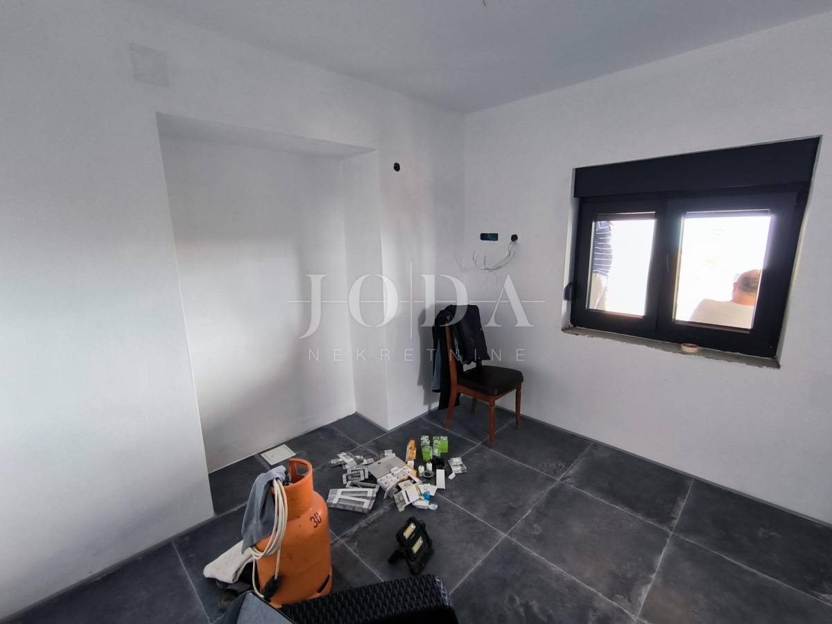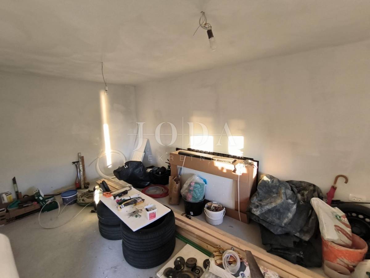 Kuća je u fazi izgradnje, visoki roh bau i prodaje se u postojećem stanju. Nova stolarija, podno grijanje, priključci vode, struje, plin, kanalizacija. Parking za 4 automobila u sklopu okućnice. U prizemlju kuće imamo jedan uređeni stan jednosobni sa dnevnim boravkom i kupaonom, te u fazi izgradnje 2 jednosobna stana sa dnevnim boravkom i kupaonom u prizemlju i na prvom katu te u potkrovlju dvosobni stan sa dnevnim boravkom, kupaonom i terasom.