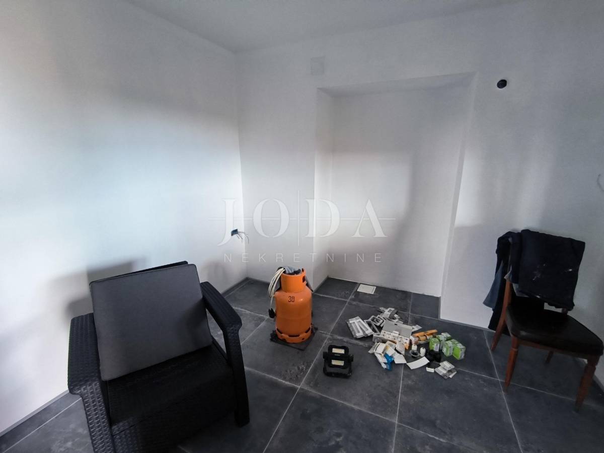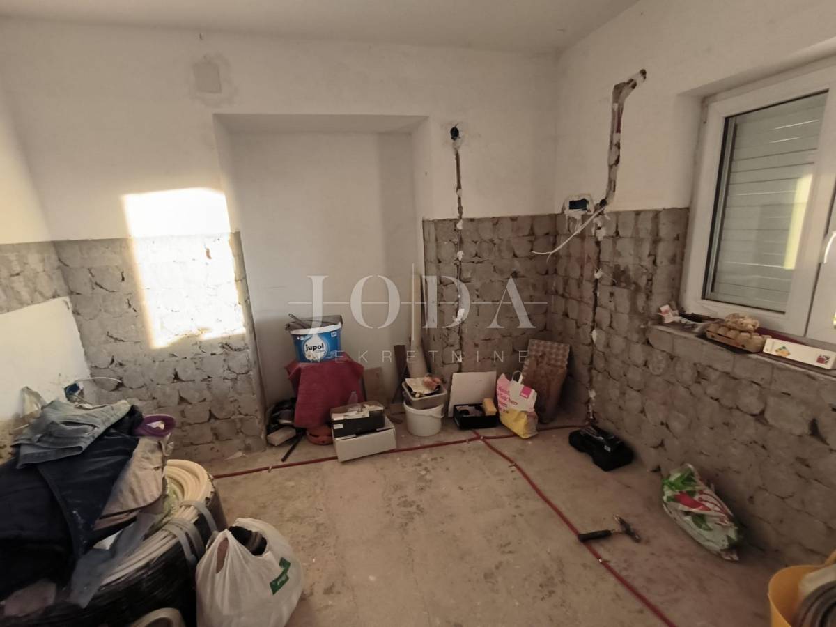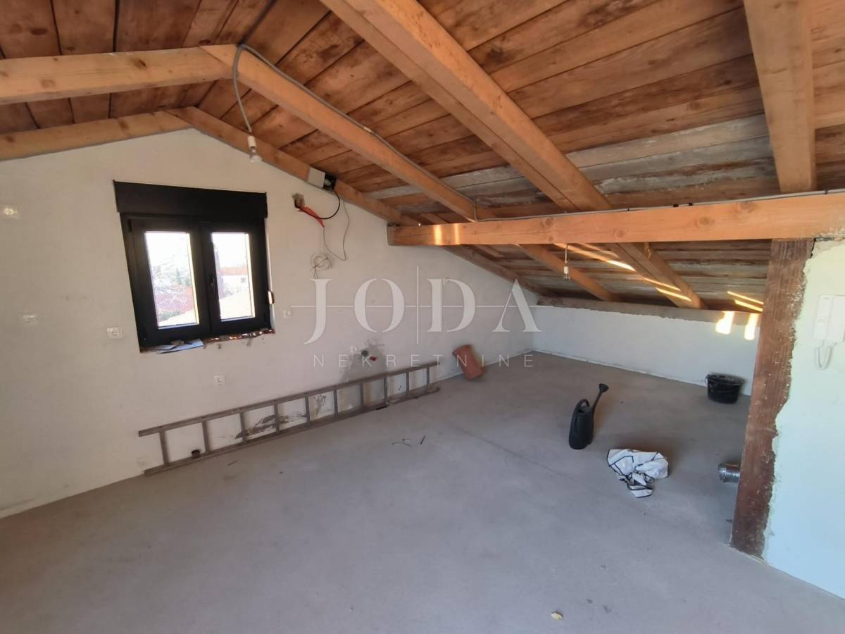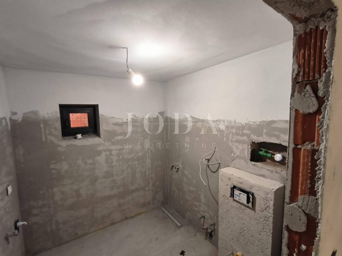 Kuća je u fazi izgradnje, visoki roh bau i prodaje se u postojećem stanju. Nova stolarija, podno grijanje, priključci vode, struje, plin, kanalizacija. Parking za 4 automobila u sklopu okućnice. U prizemlju kuće imamo jedan uređeni stan jednosobni sa dnevnim boravkom i kupaonom, te u fazi izgradnje 2 jednosobna stana sa dnevnim boravkom i kupaonom u prizemlju i na prvom katu te u potkrovlju dvosobni stan sa dnevnim boravkom, kupaonom i terasom.