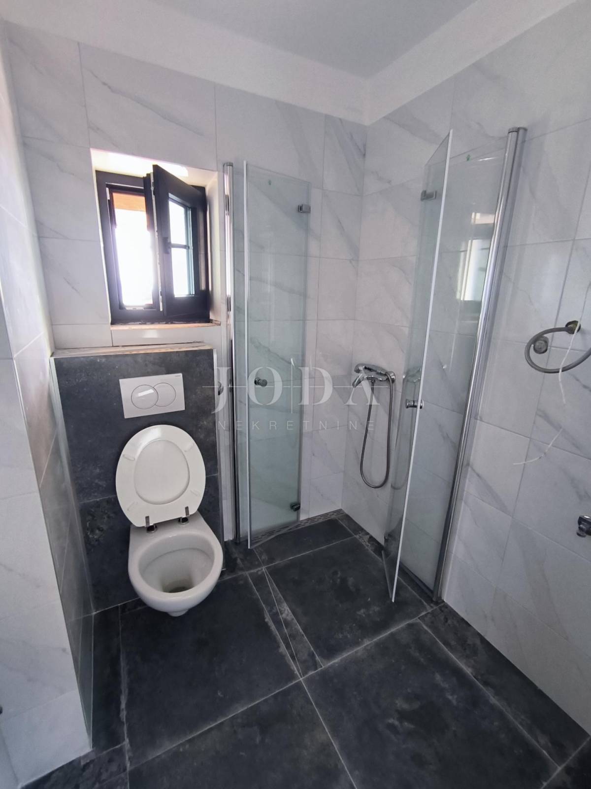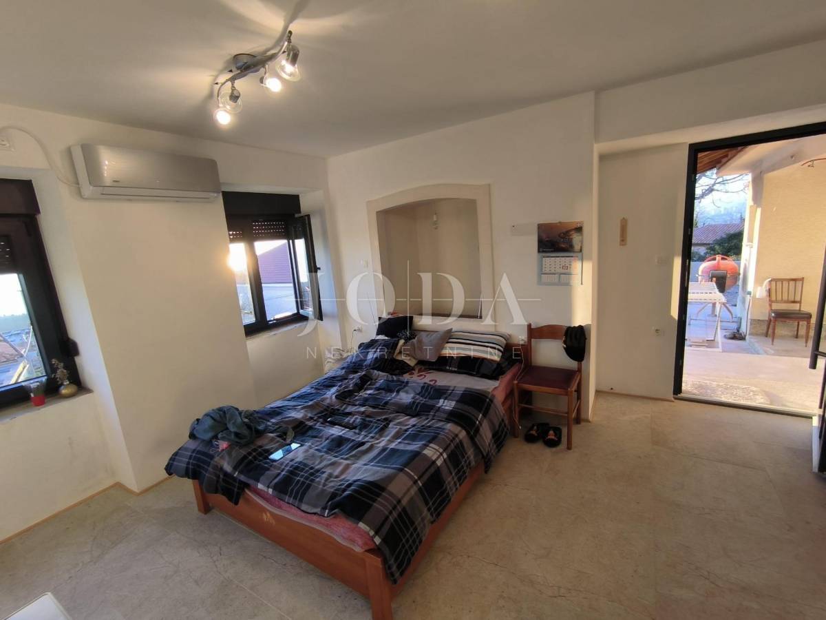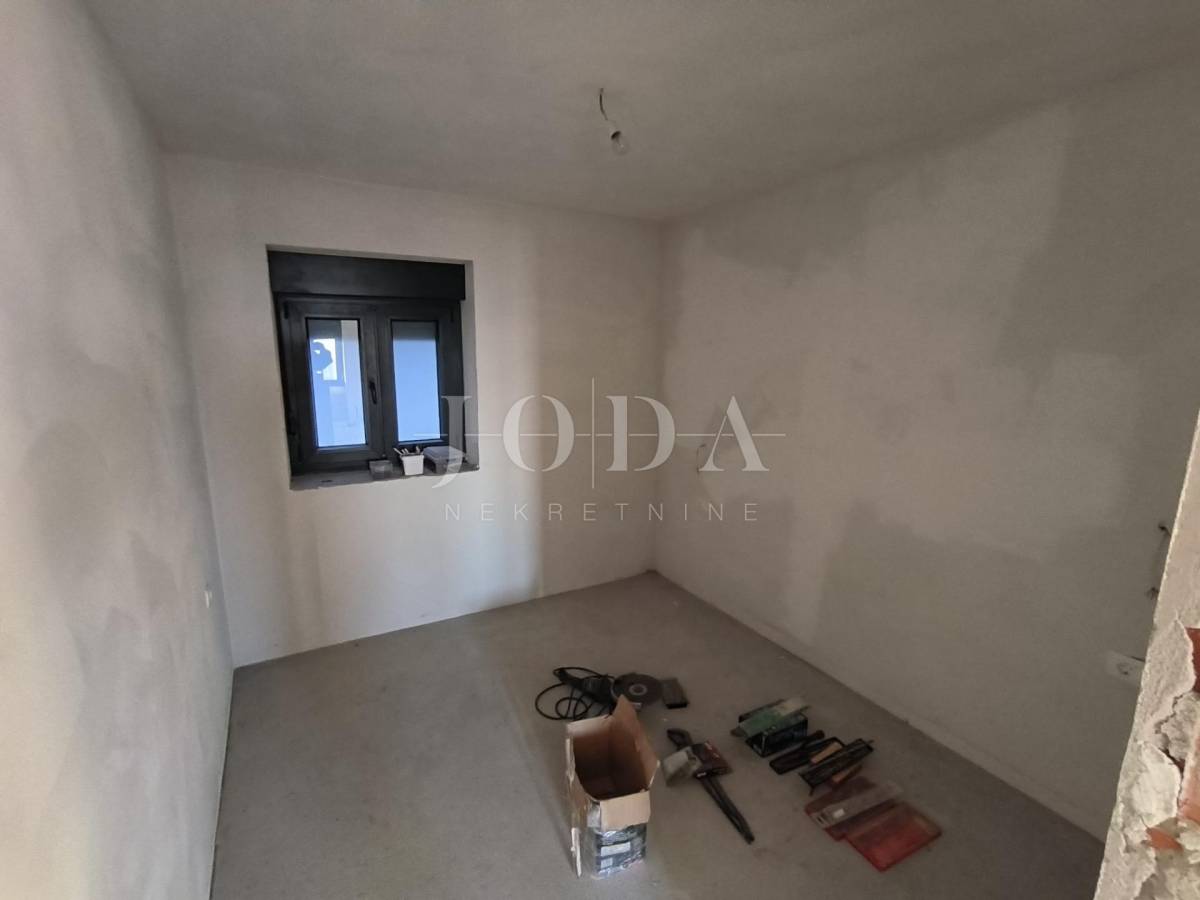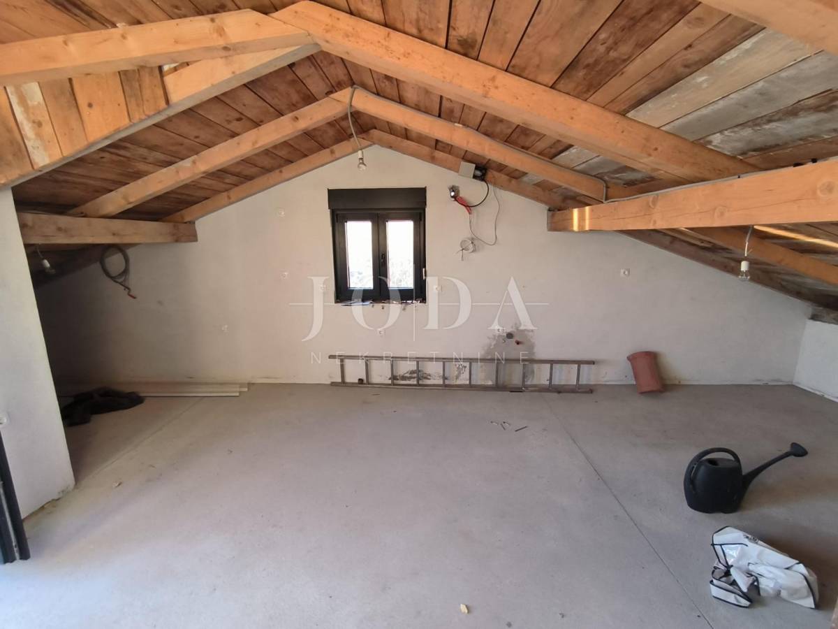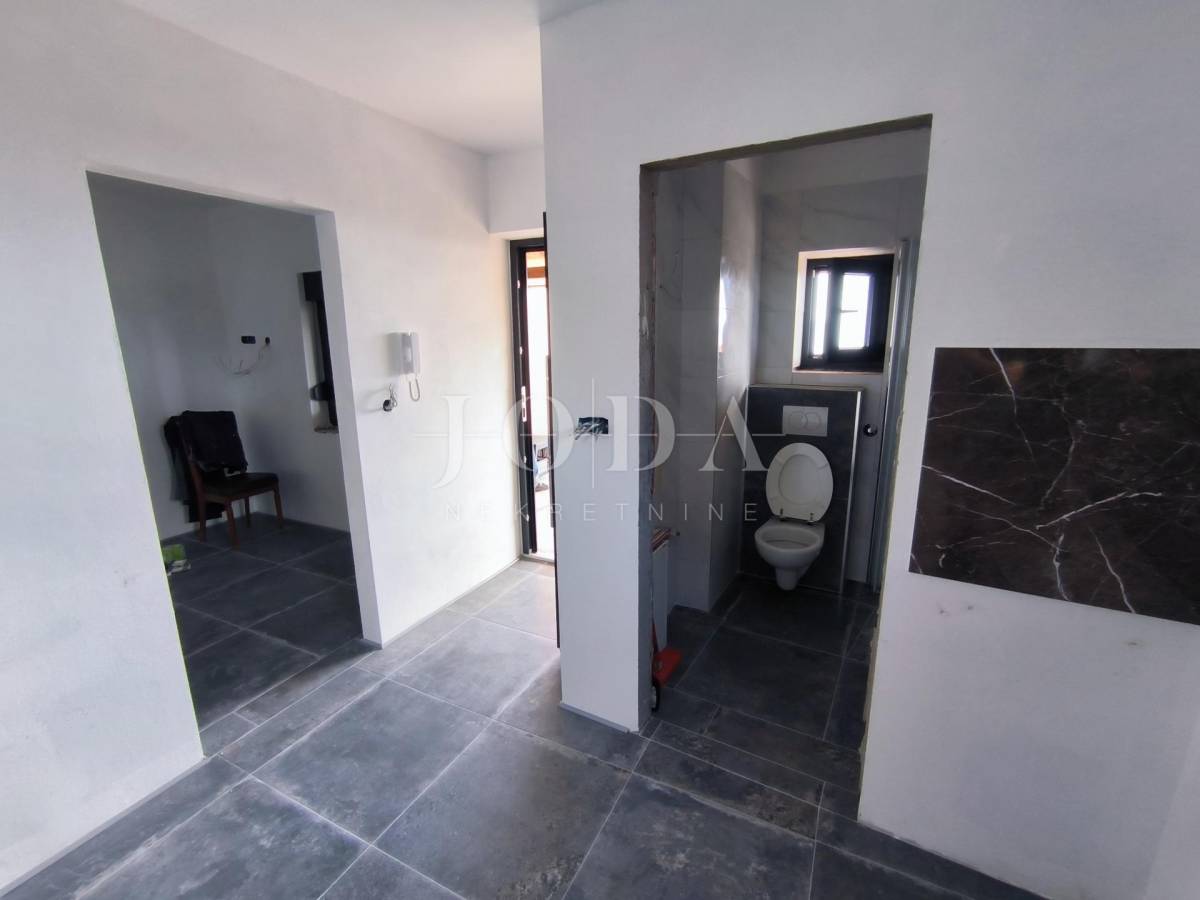 Kuća je u fazi izgradnje, visoki roh bau i prodaje se u postojećem stanju. Nova stolarija, podno grijanje, priključci vode, struje, plin, kanalizacija. Parking za 4 automobila u sklopu okućnice. U prizemlju kuće imamo jedan uređeni stan jednosobni sa dnevnim boravkom i kupaonom, te u fazi izgradnje 2 jednosobna stana sa dnevnim boravkom i kupaonom u prizemlju i na prvom katu te u potkrovlju dvosobni stan sa dnevnim boravkom, kupaonom i terasom.