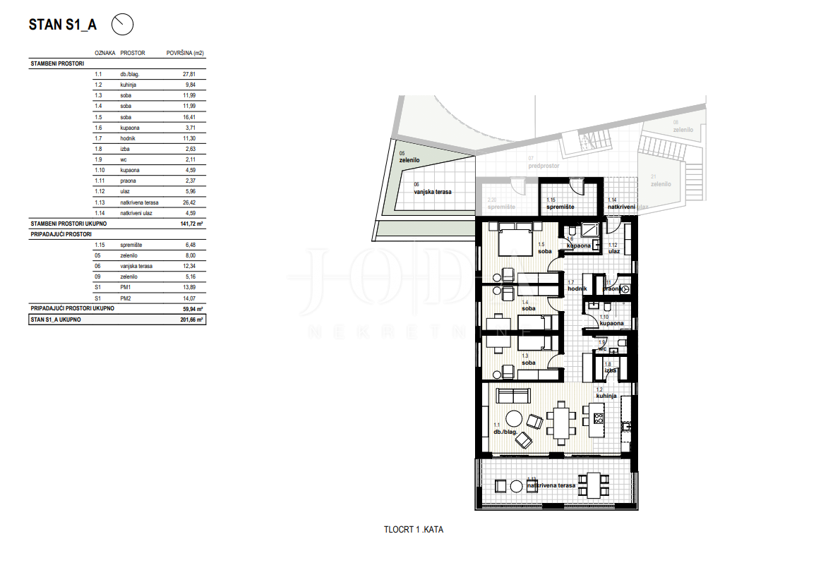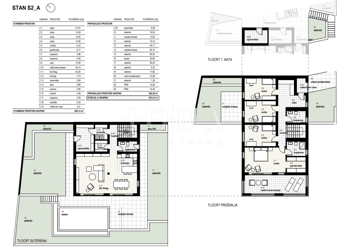 Stanu pripadaju sljedeći pripadajući prostori: