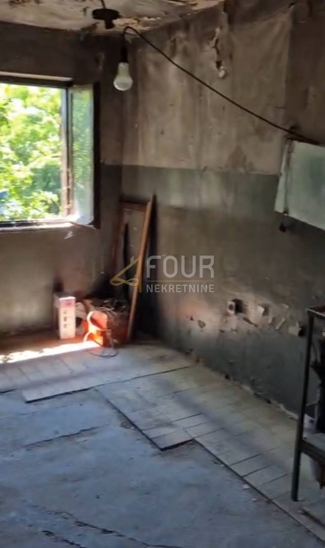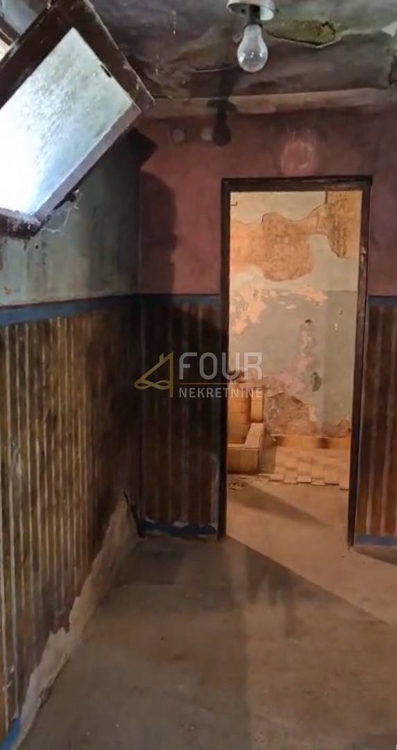 Nekretnina se sastoji od ulaznog, dugačkog hodnika koji povezuje tri prostorije, kupaonicu, terasu i spremište. Potrebna je potpuna renovacija, što budućem vlasniku pruža izvrsnu priliku za uređenje prostora u skladu s vlastitim željama i potrebama te za maksimalno iskorištavanje potencijala same lokacije.