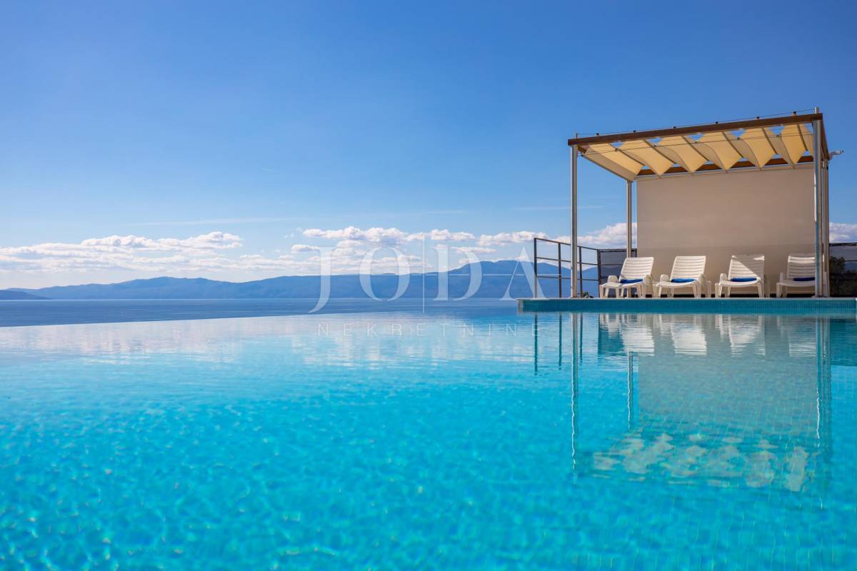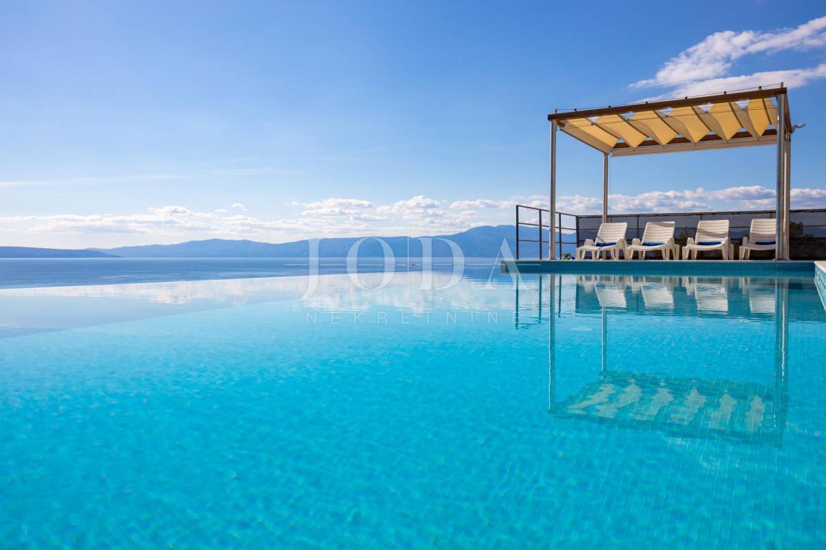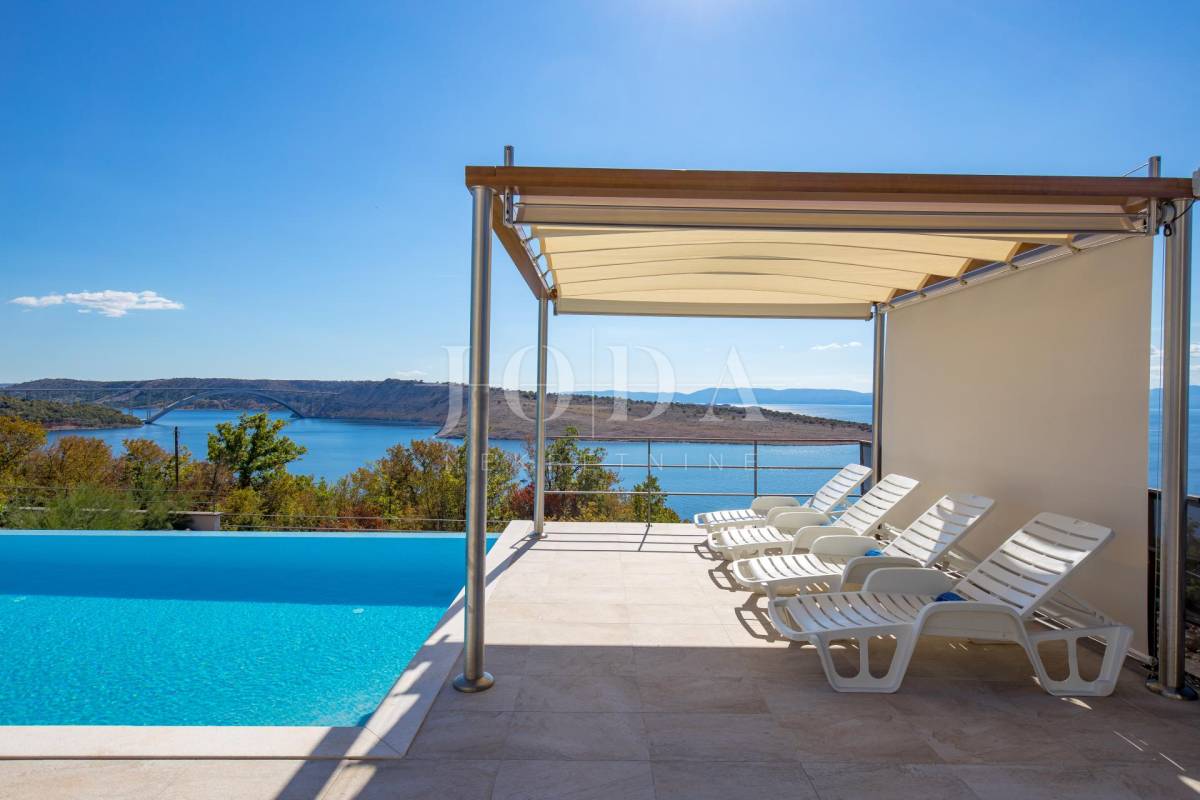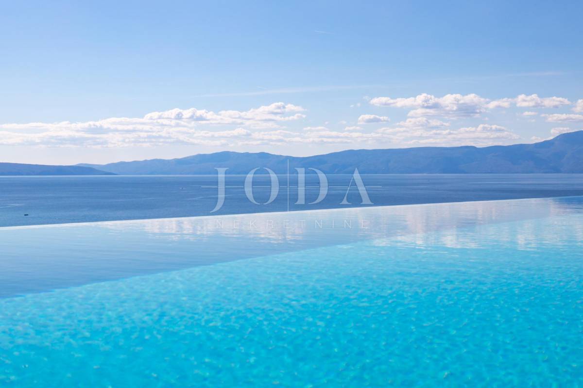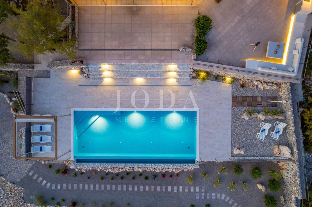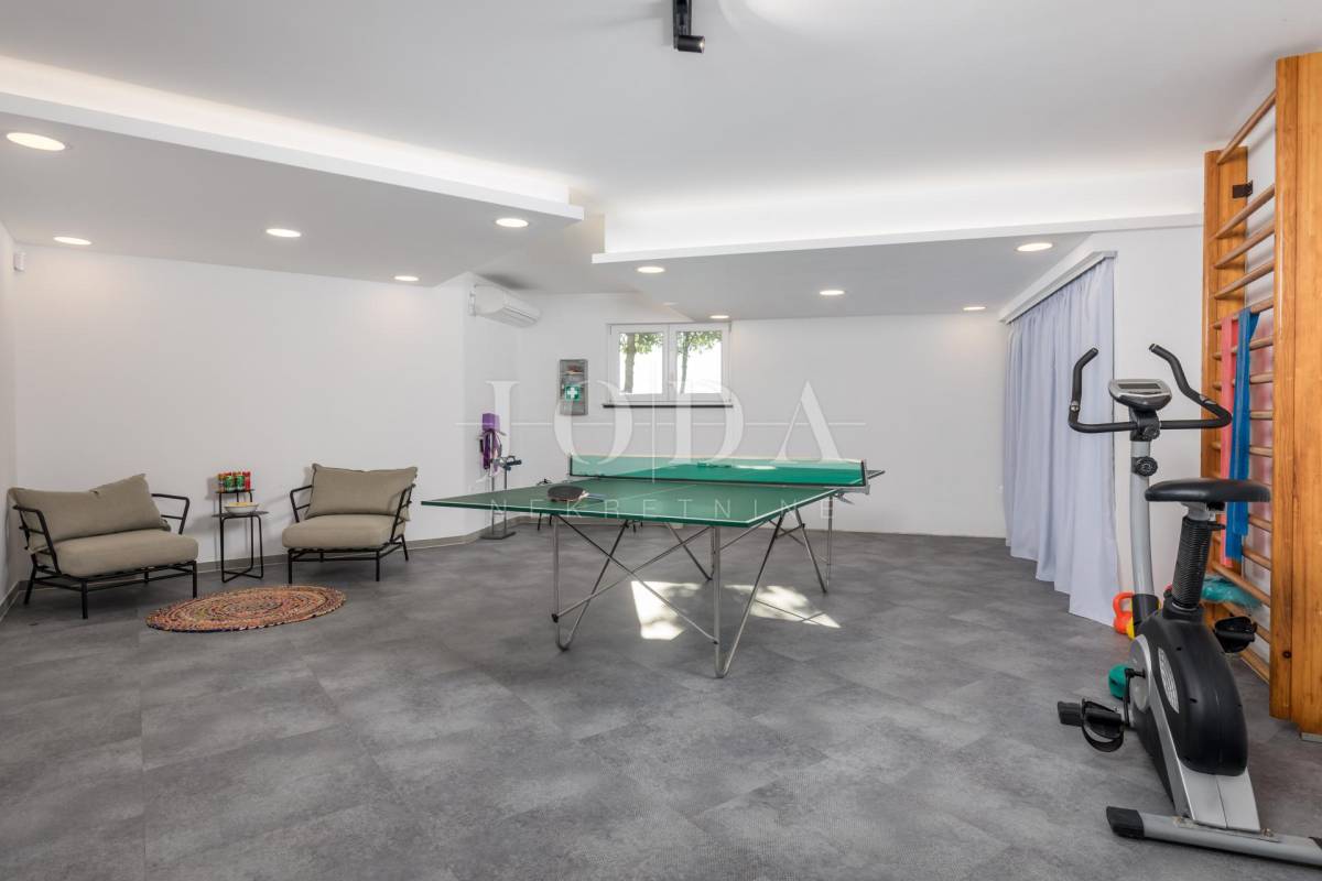 Cijelo prizemlje je orijentirano na južnu stranu sa izlazom na veliku terasu unutar koje dominira preljevni bazen te prostor lounga.
